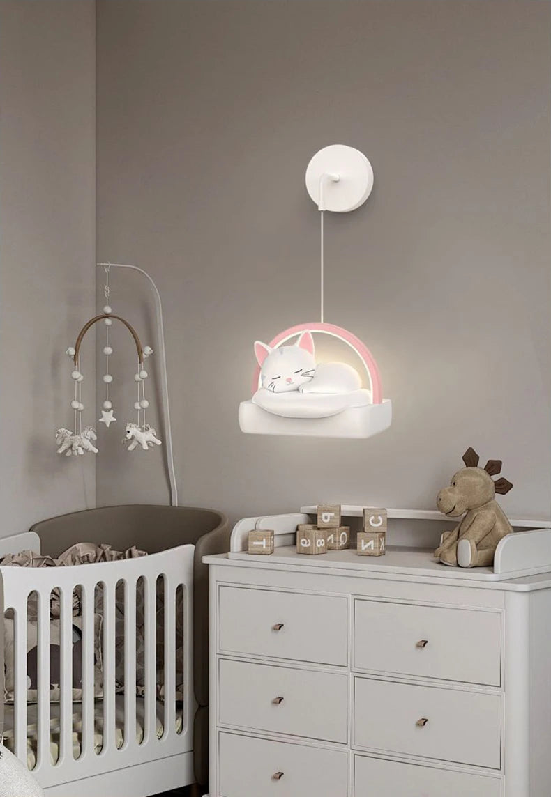 Meet the purr-fect bedtime buddy: a smiling cartoon-cat pendant that drops gentle, eye-kind light right where little dreamers need it most.