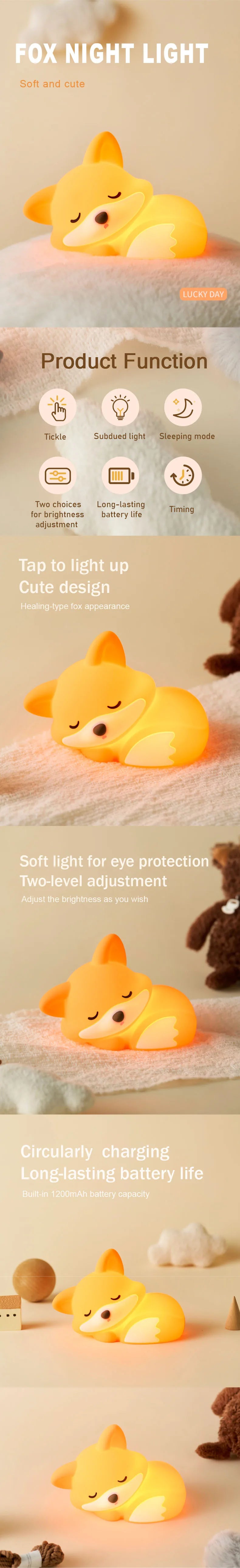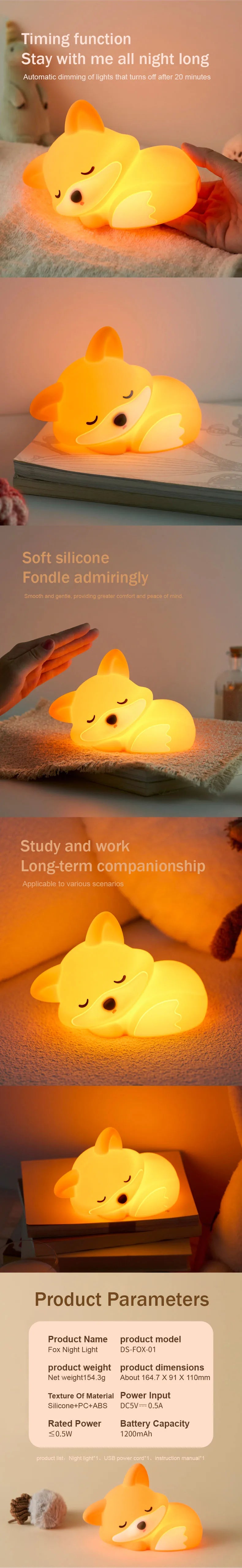 🦊 Palm-size fox glow – adorable silicone bedside buddy that lights up with one gentle tap