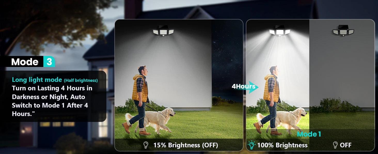 "Get peace of mind with this ultra-bright solar floodlight. Its intelligent motion detection activates only when needed, while three lighting modes adapt to any situation. The weatherproof design delivers reliable performance year-round without wiring or electricity bills."