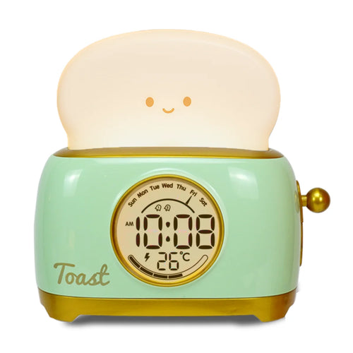 Creative Digital Clock with Night Light: This digital clock is designed with a toaster-shaped night light which is cute and easy to use. Press to switch on the light and it is dimmable that long press to adjust the brightness, and double click to delay bedtime. Which is practical can be used as a light at night. π