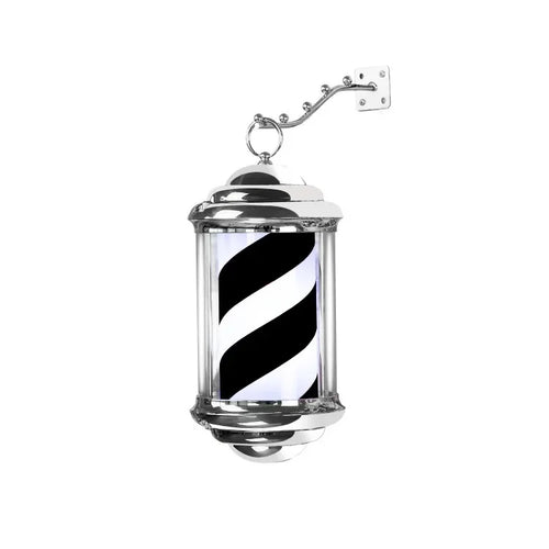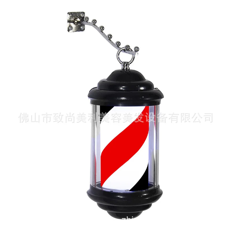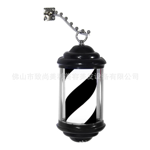 Mini wall light for hair salon, barber shop pole with elegant design and black structure.