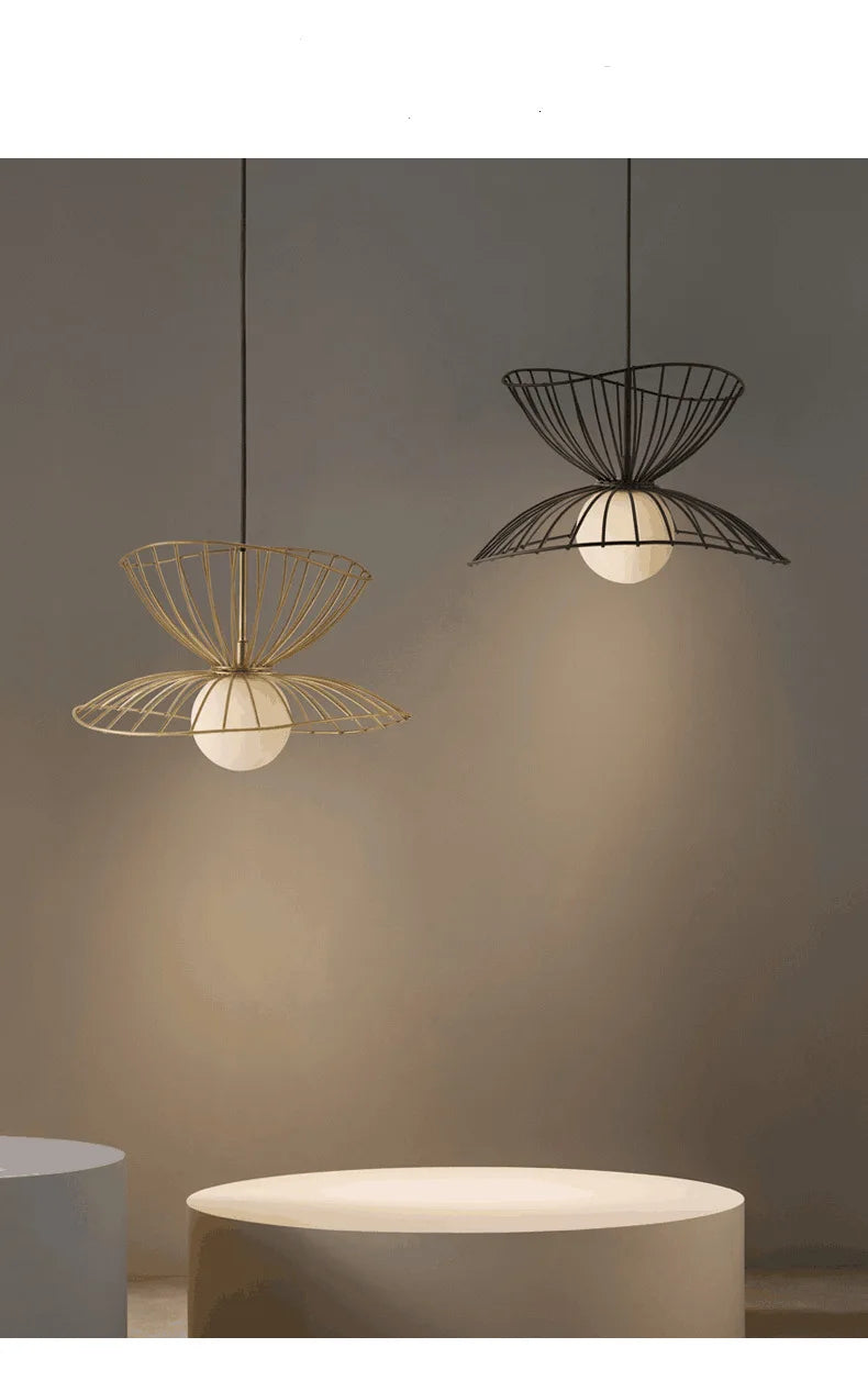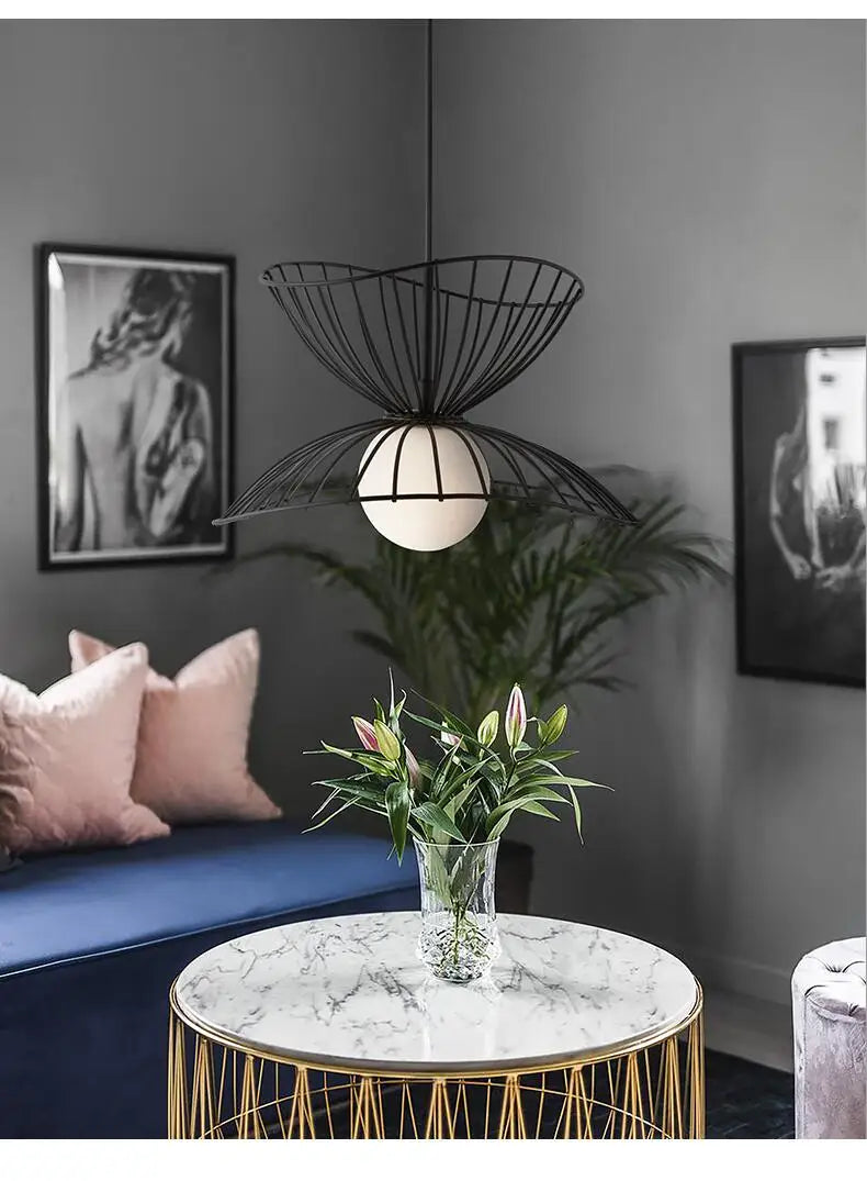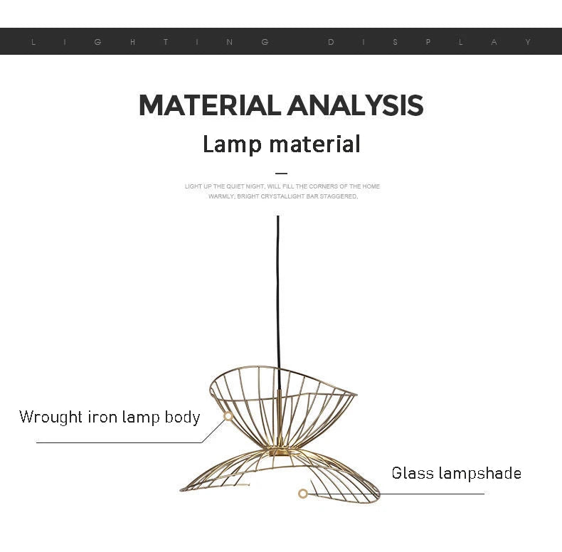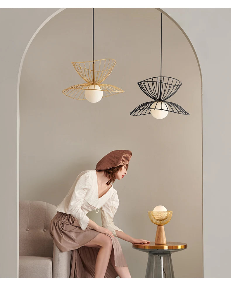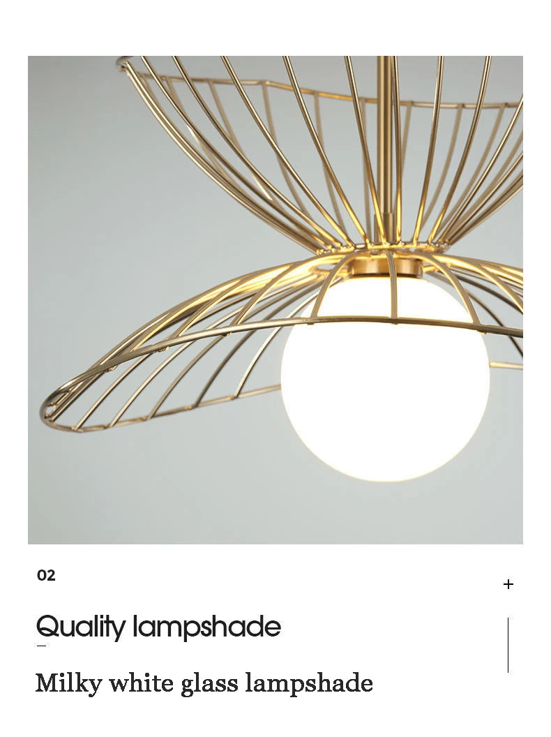 🎩 Design: Elegant mesh straw hat style – a modern chandelier with artistic charm.