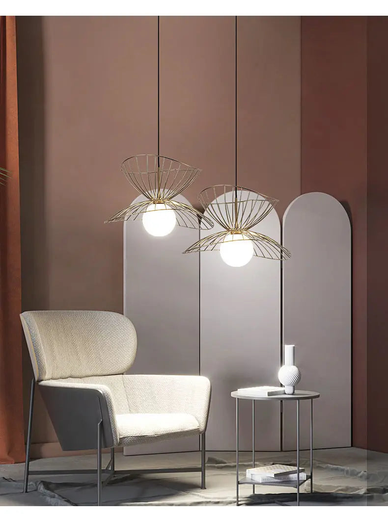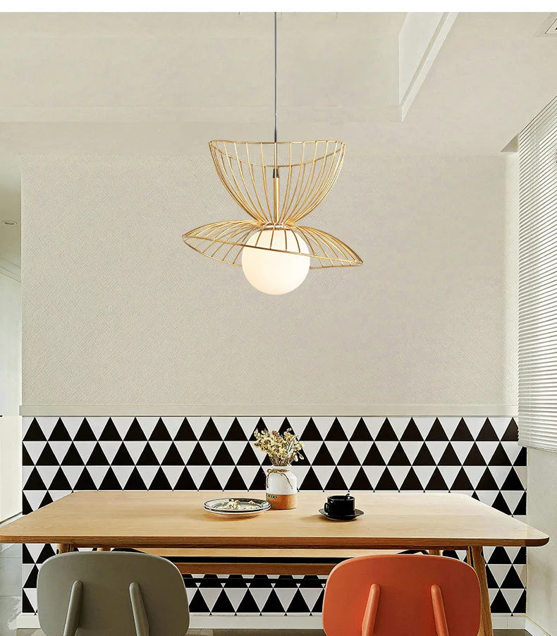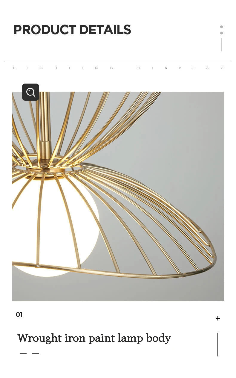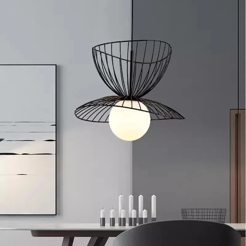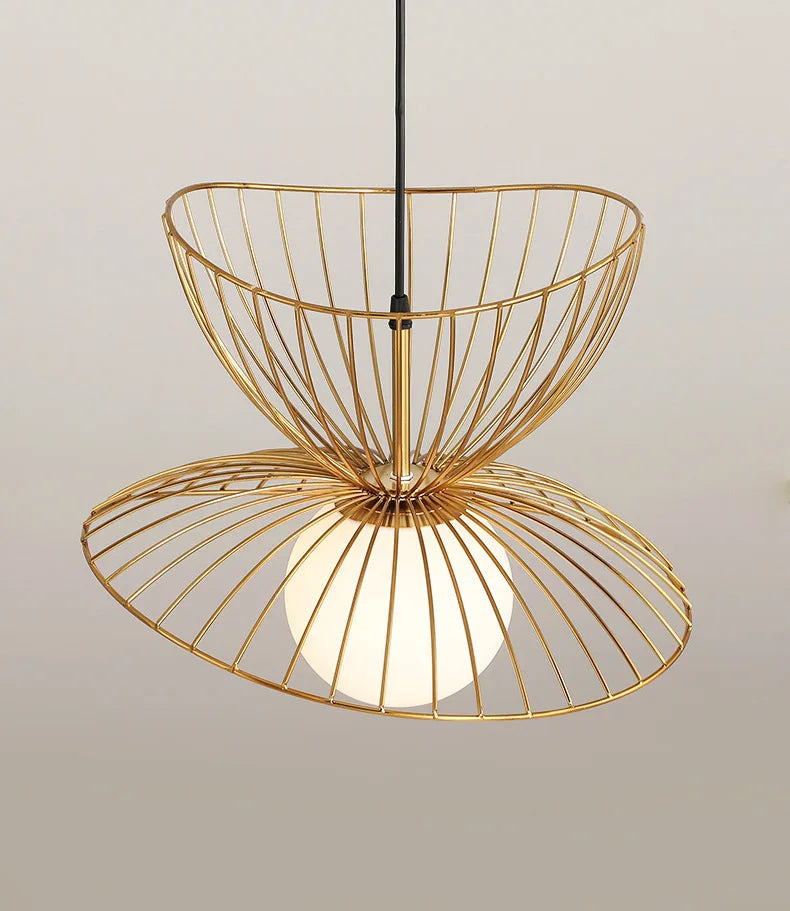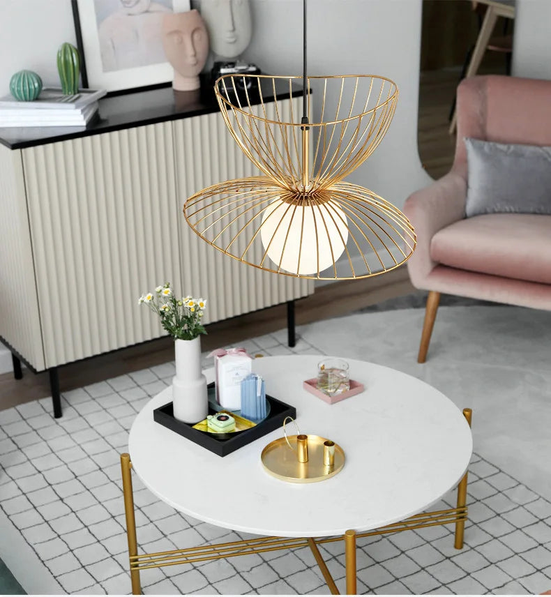 🎩 Design: Elegant mesh straw hat style – a modern chandelier with artistic charm.