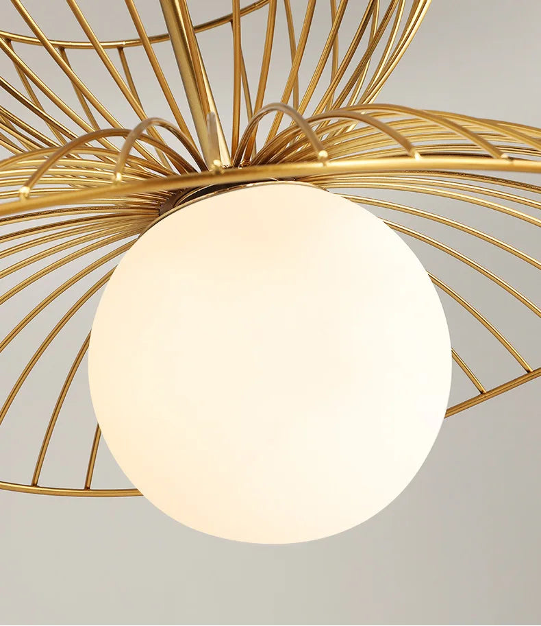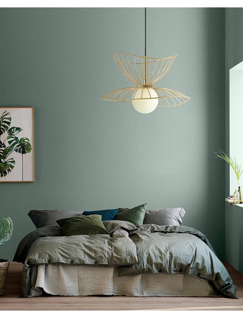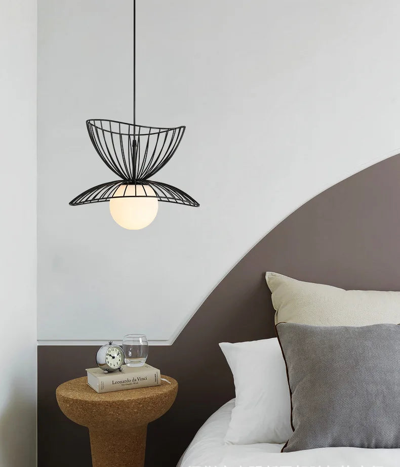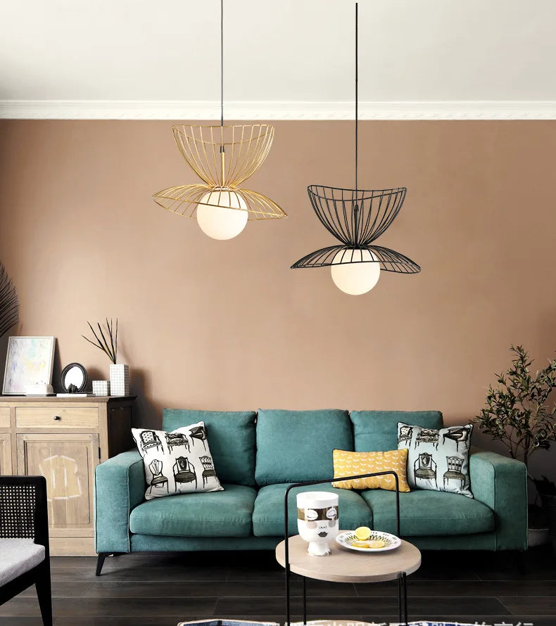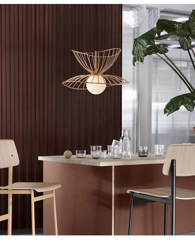 🎩 Design: Elegant mesh straw hat style – a modern chandelier with artistic charm.