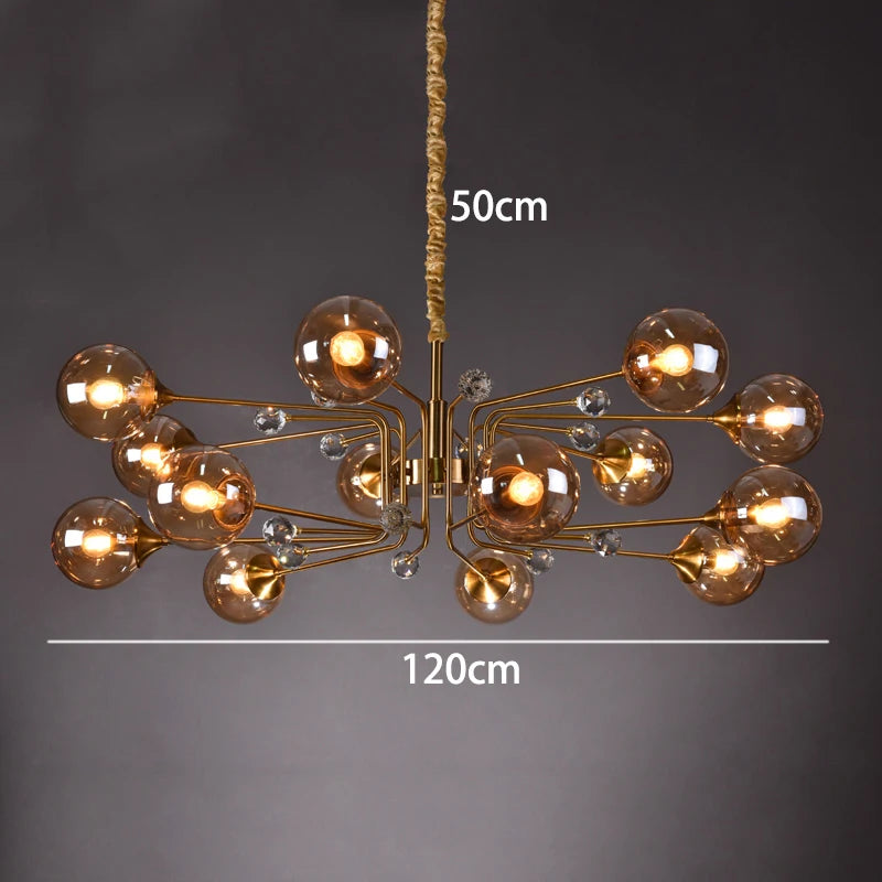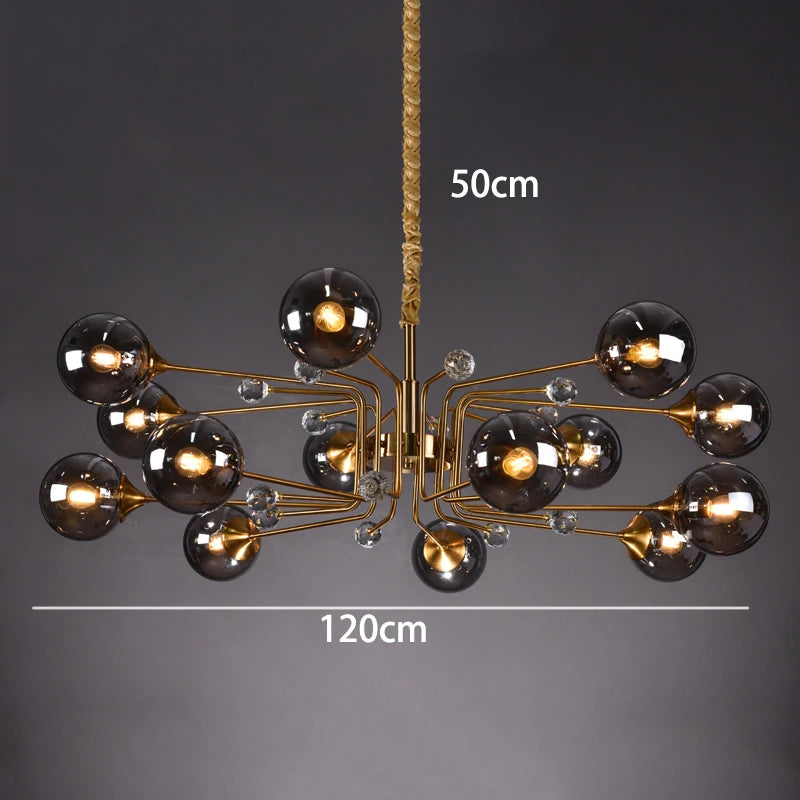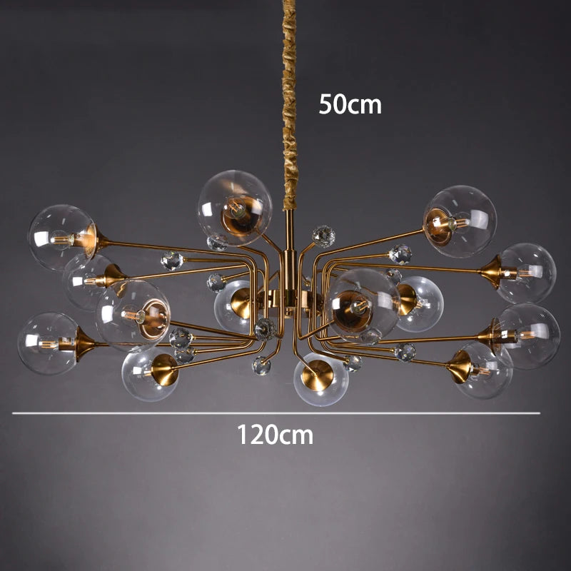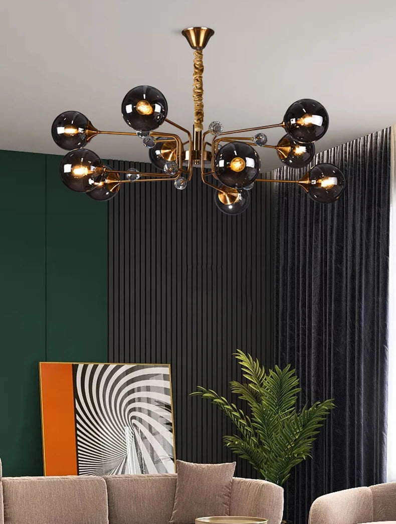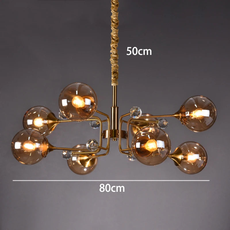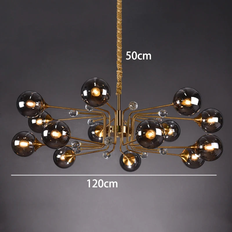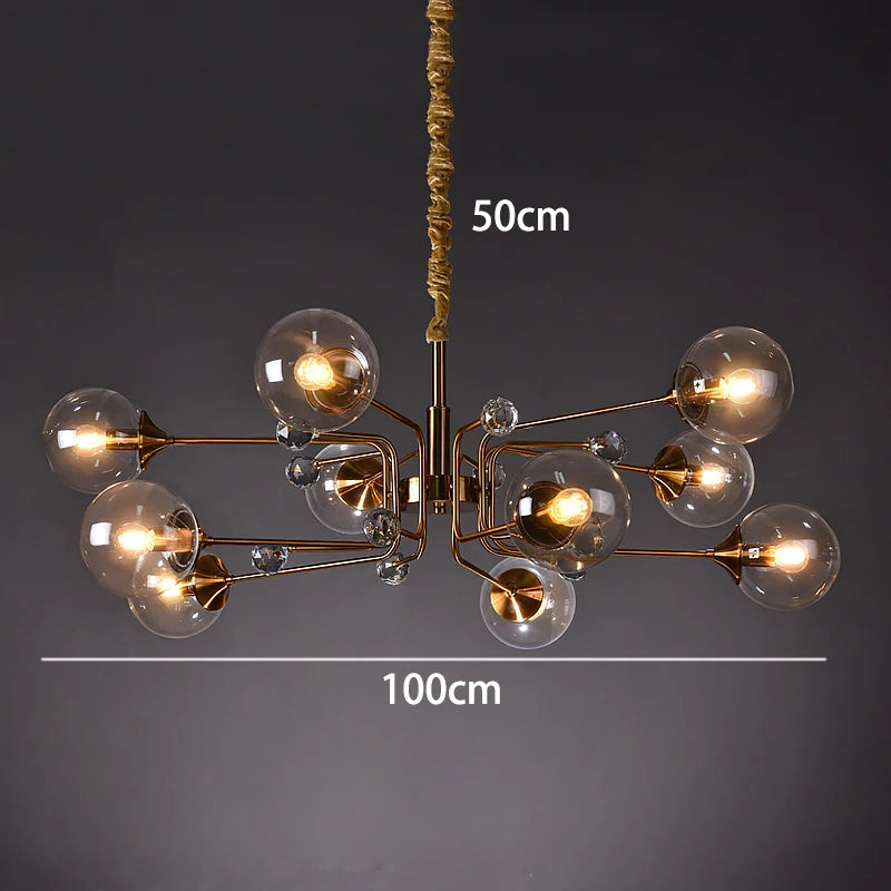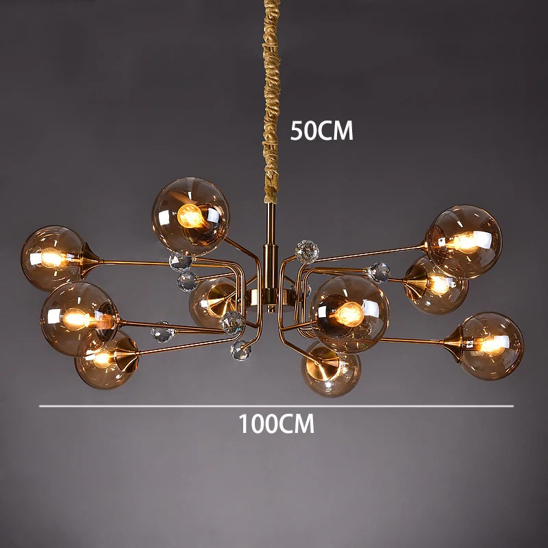 6, 8, 10, 12 or 14 globes on a 70β120 cm ring; 50 cm height (cord adjustable up to 300 cm). Perfect above dining tables, kitchen islands or loft living rooms.