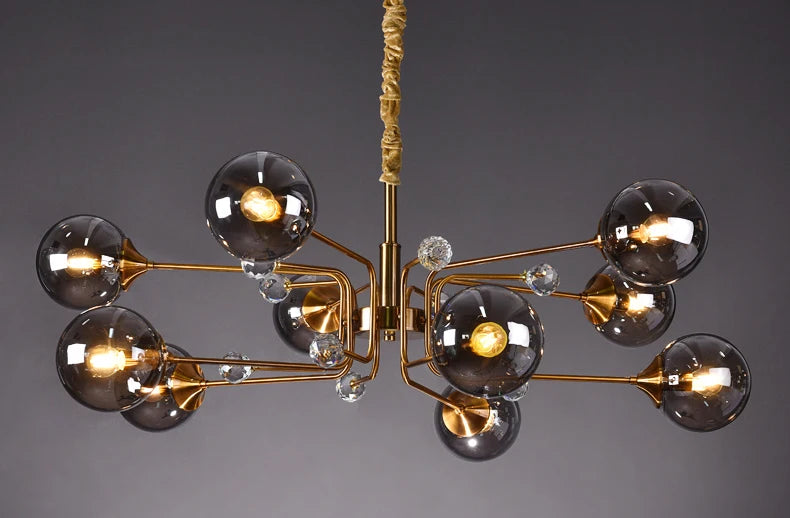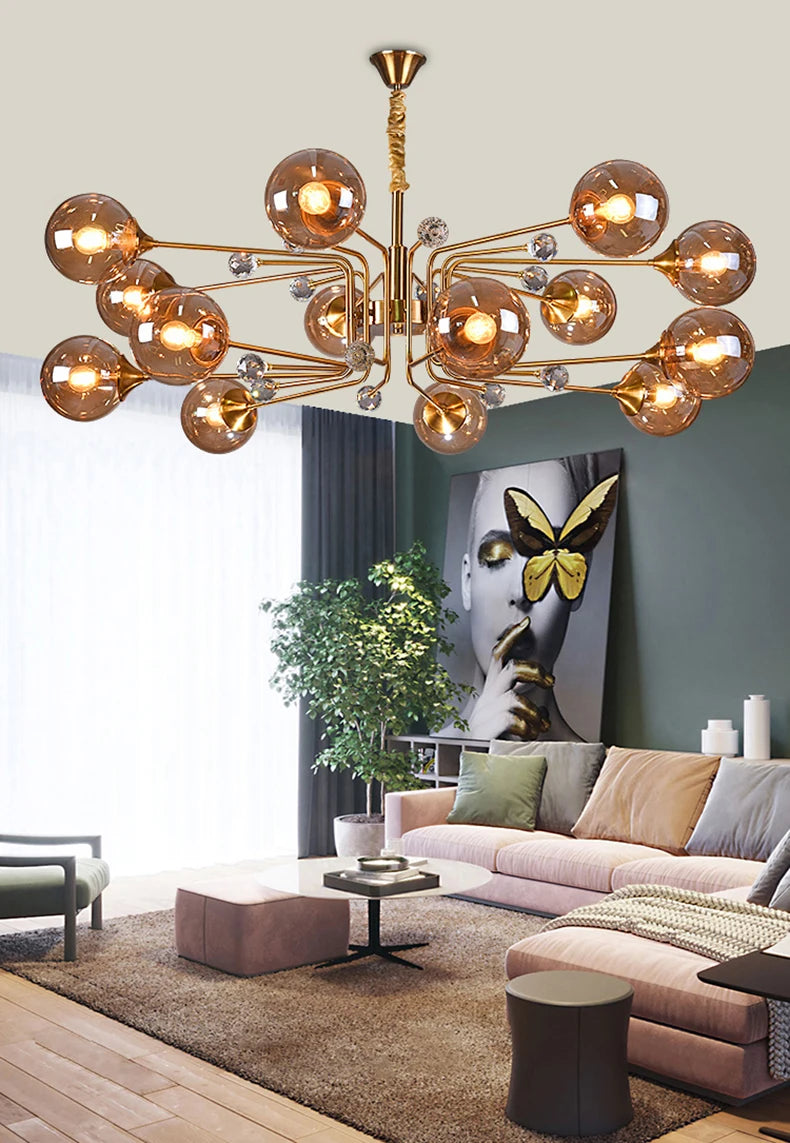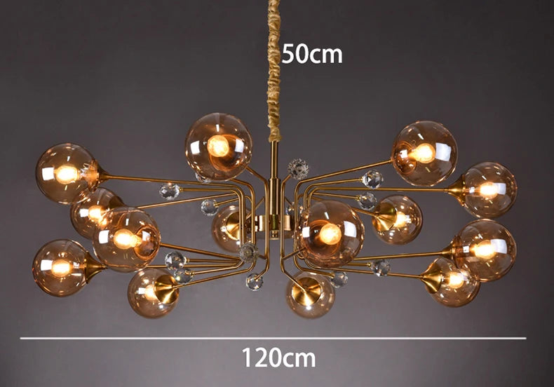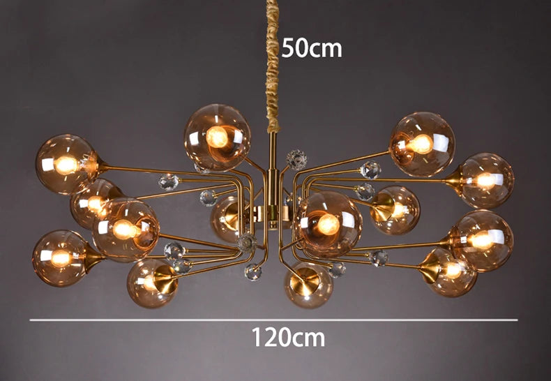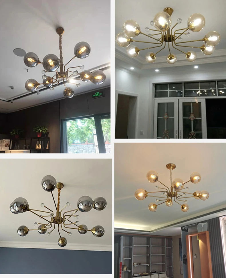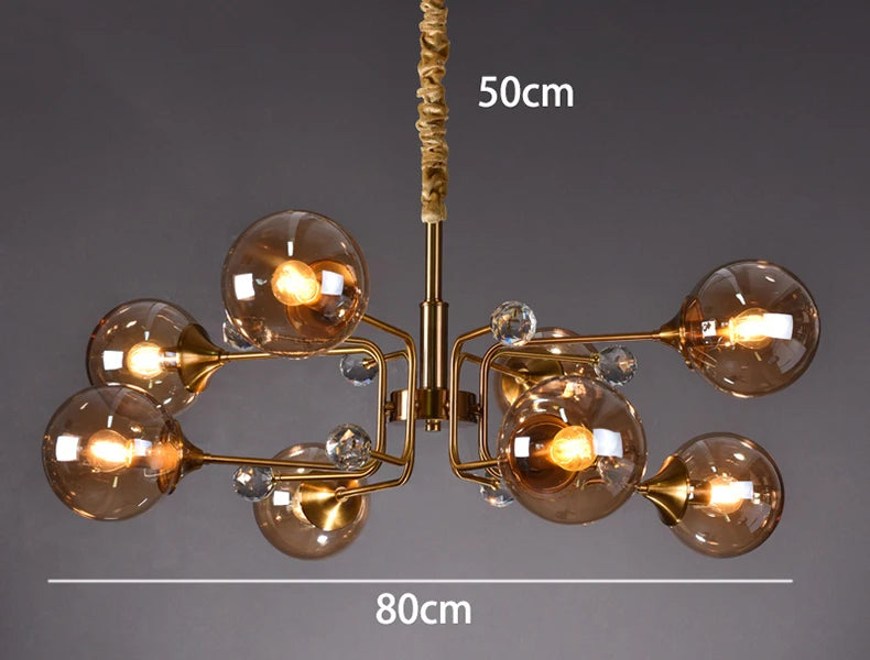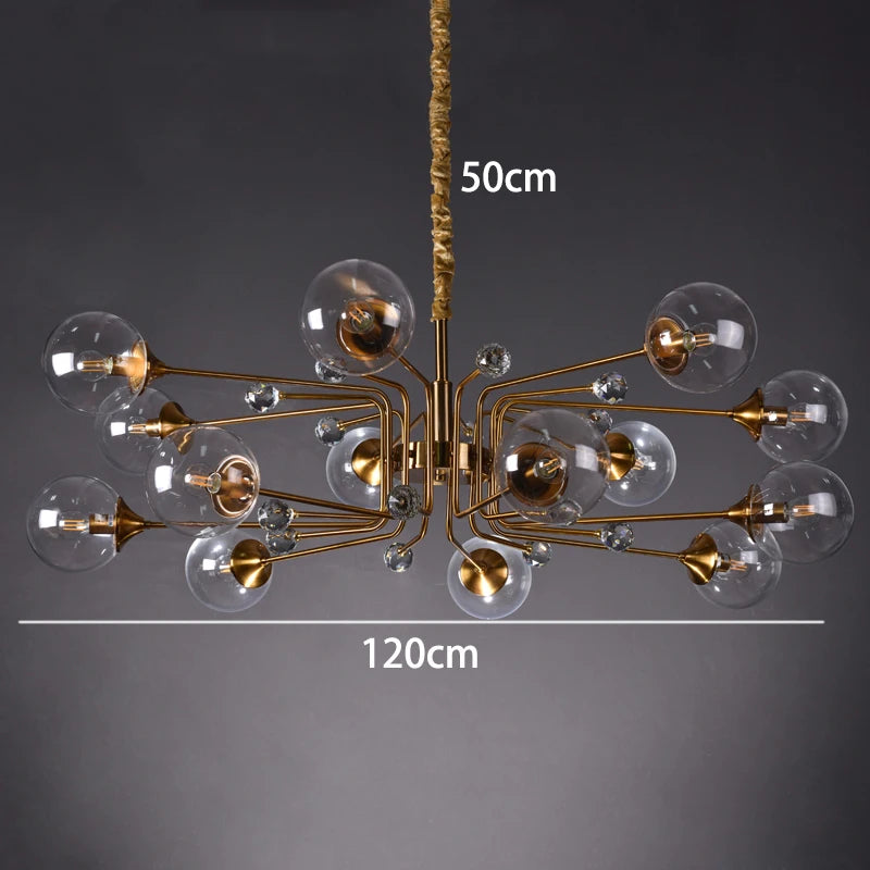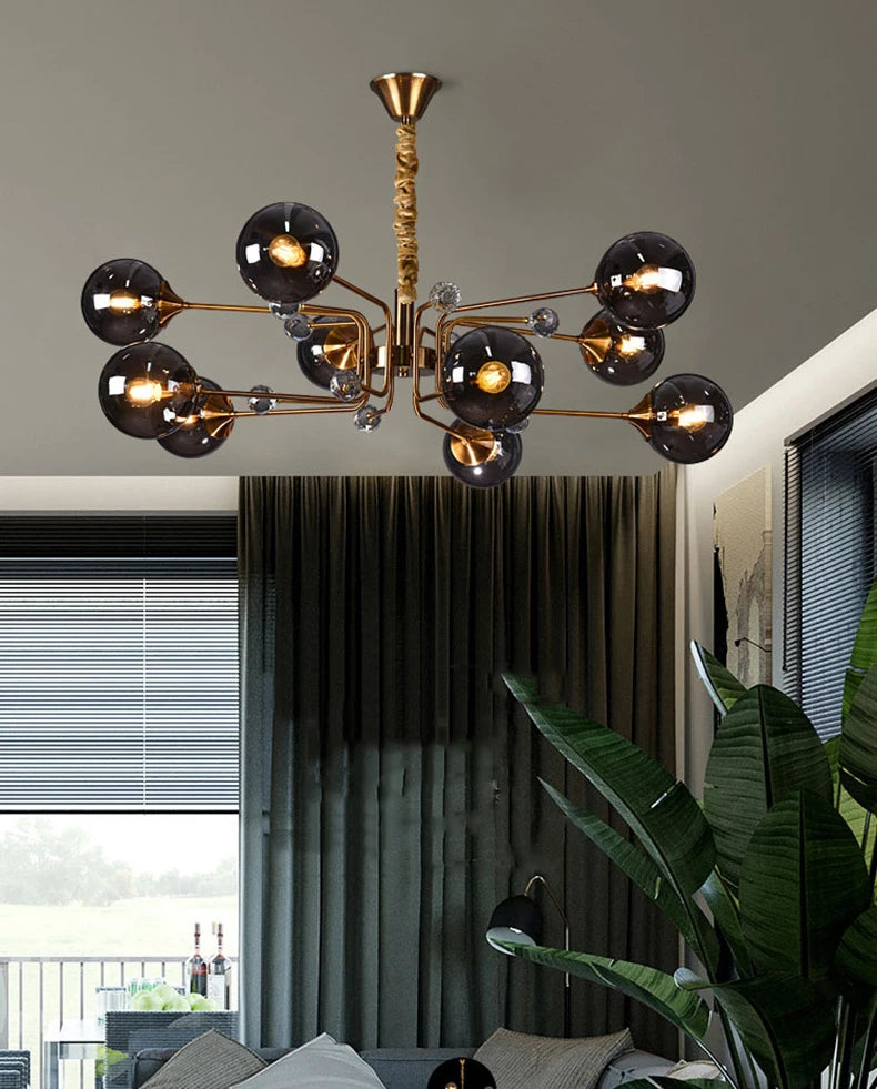 6, 8, 10, 12 or 14 globes on a 70β120 cm ring; 50 cm height (cord adjustable up to 300 cm). Perfect above dining tables, kitchen islands or loft living rooms.