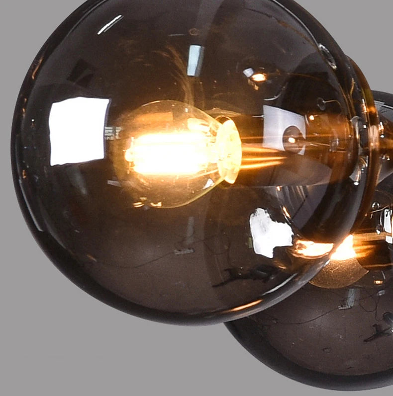 Clear, Smoky Gray or Amber glass spheres thread through matte-black ironβmix, match or line them up for custom drama.