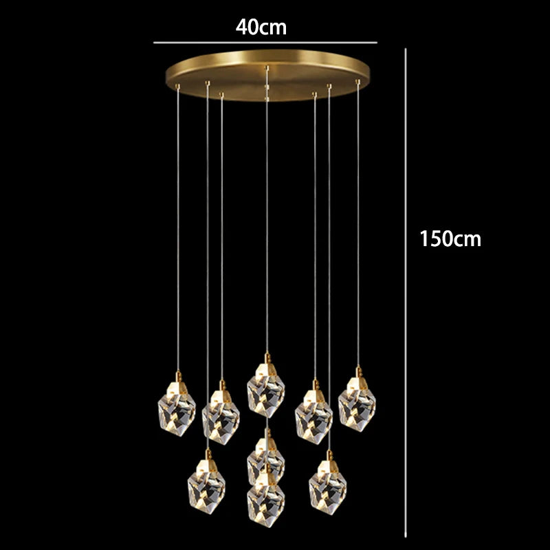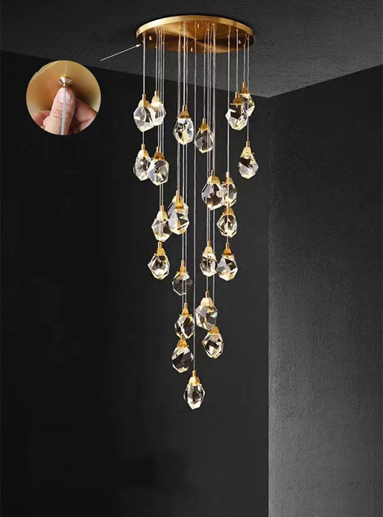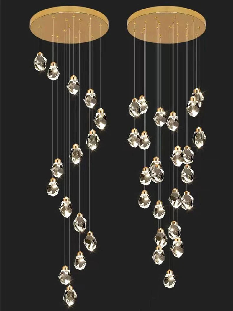 Choose 6, 9, 12, 15, 18, 22 or 25 crystal drops on a 40–60 cm iron ring. Heights adjust from 150 cm up to 250 cm—perfect over dining tables, grand staircases or boutique hotel lobbies.