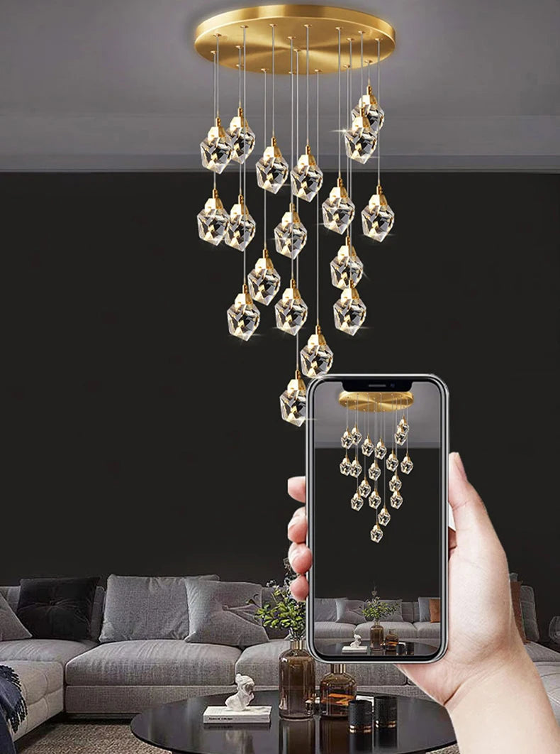 30–125 W of dimmable LED sparkle drips through precision-cut crystals, bathing 10–20 m² in 249–2000 lumens. Flip your wall switch or use the remote/app to glide from crisp daylight to golden hour in seconds.