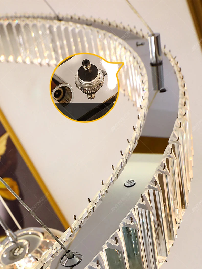 LED strip hidden inside precision-cut crystal casts 249–2000 lumens over 10–30 m²—tap the remote or your phone to glide from cool focus to golden unwind.