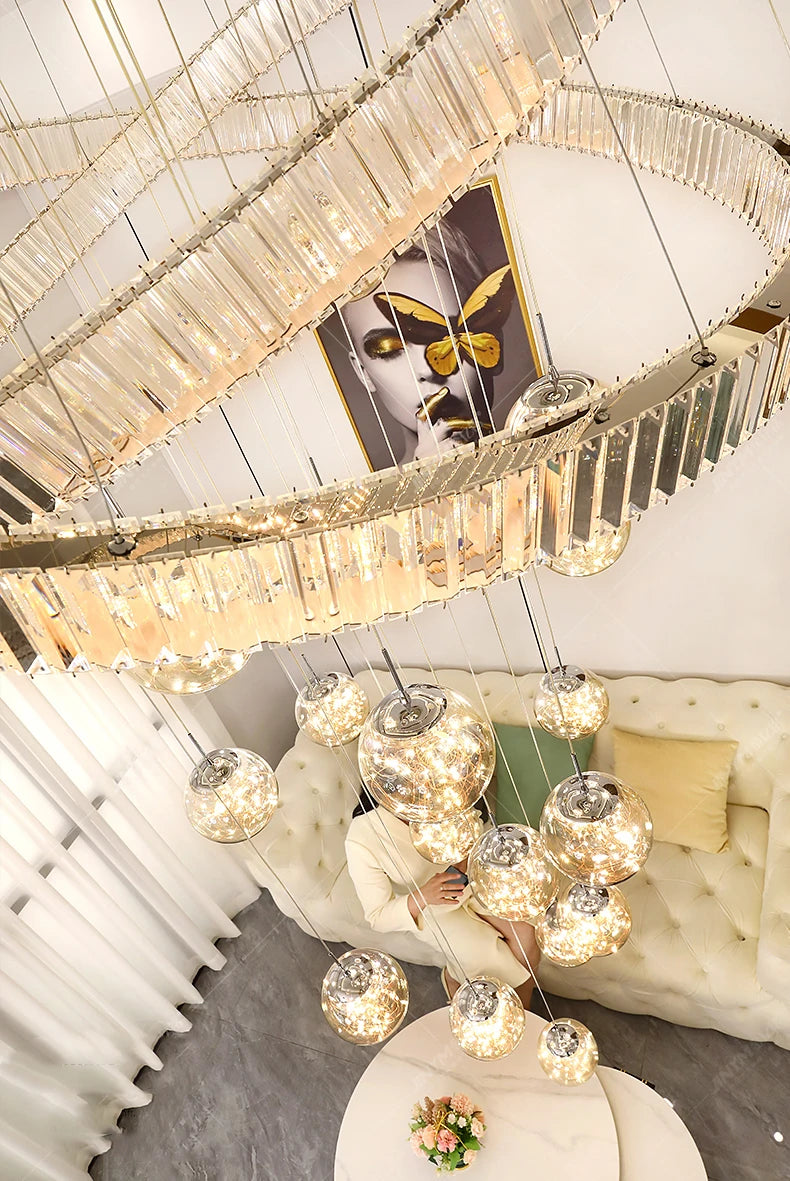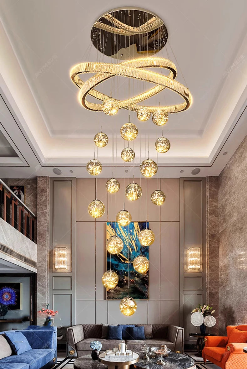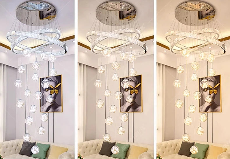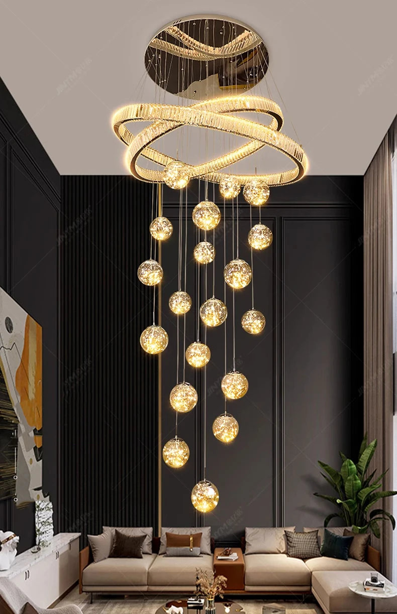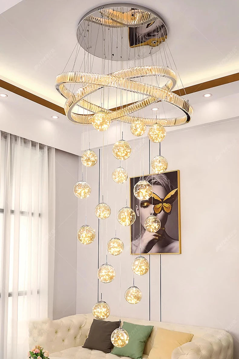 Pick your drama: 50+60 cm, 60+80 cm, 80+100 cm or 100+120 cm dual-ring diameters, all hanging on a 300 cm cord you can shorten in seconds.