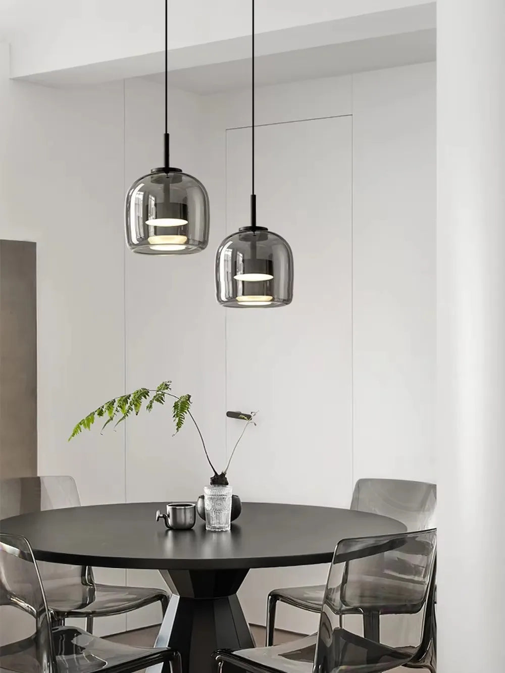 Modern LED pendant light, smoked glass 15/26/38 cm