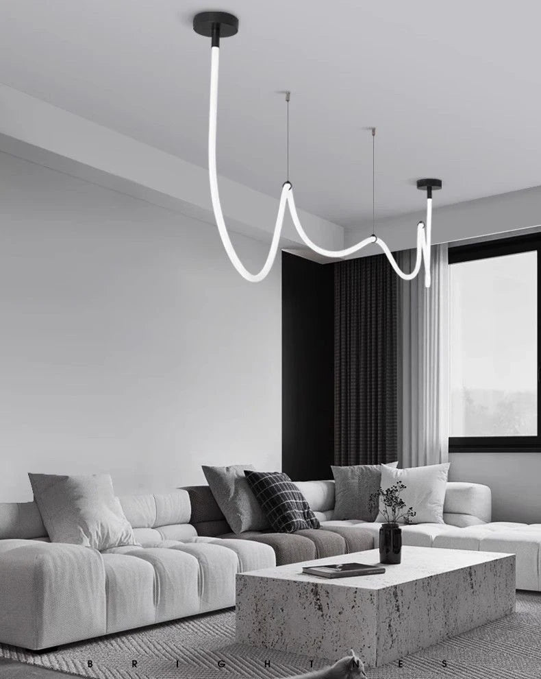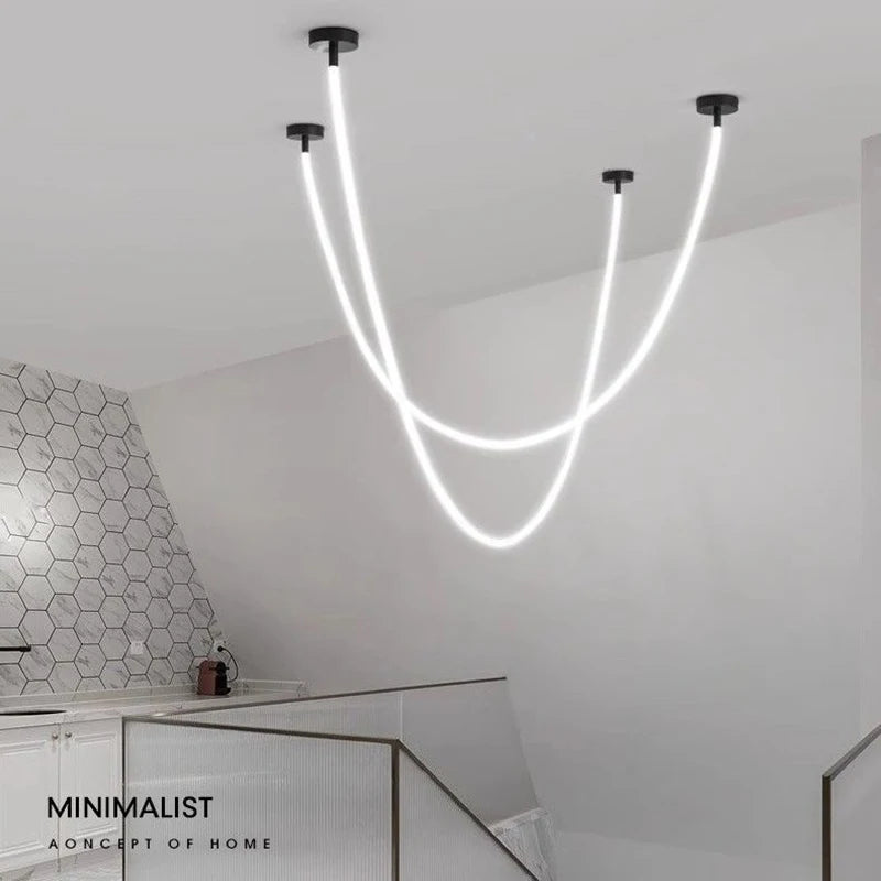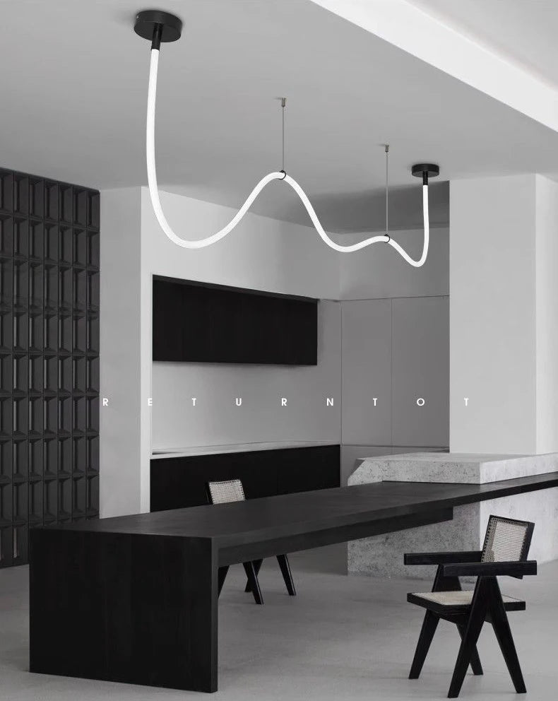 Clean lines, endless glow. This sculptural LED chandelier sends light both up and down, sketching a bright horizon across kitchens, living rooms, or villa stairwells—360° of effortless modern style.