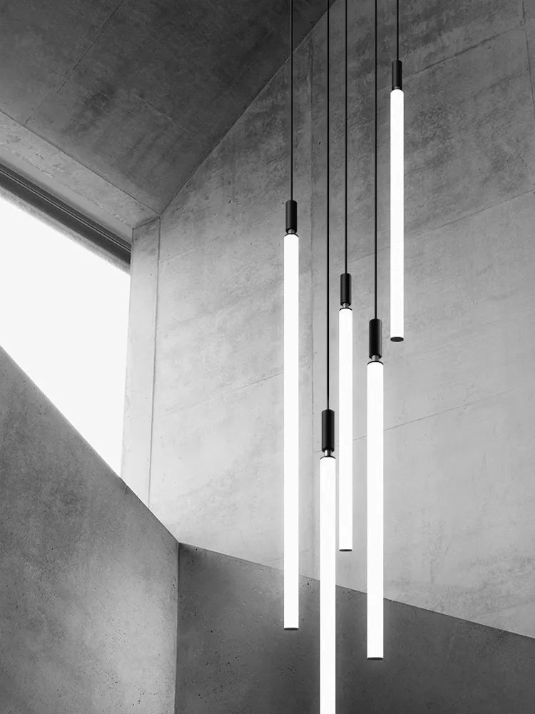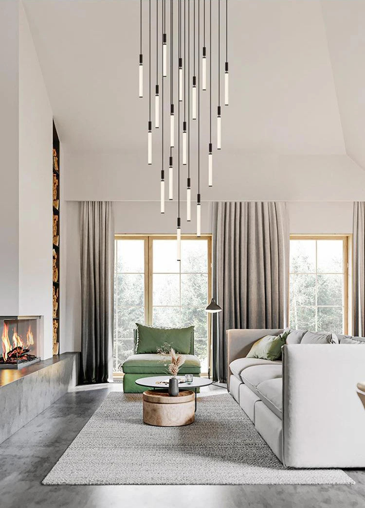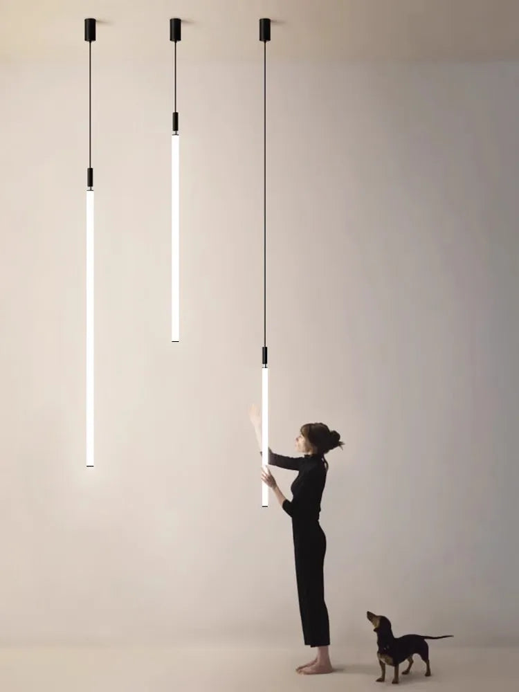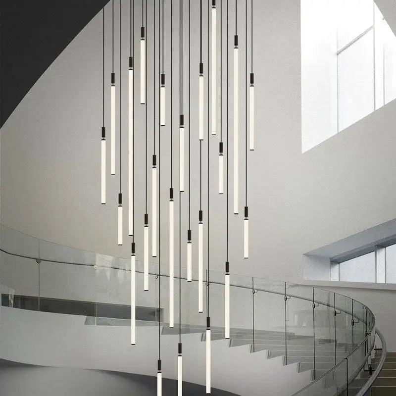 Ilumine seu espaço com sofisticação e estilo. Este lustre longo e moderno é a solução de iluminação perfeita para quartos, salas de estar, lounges de hotéis, balcões de bar ou até mesmo escadas elegantes.