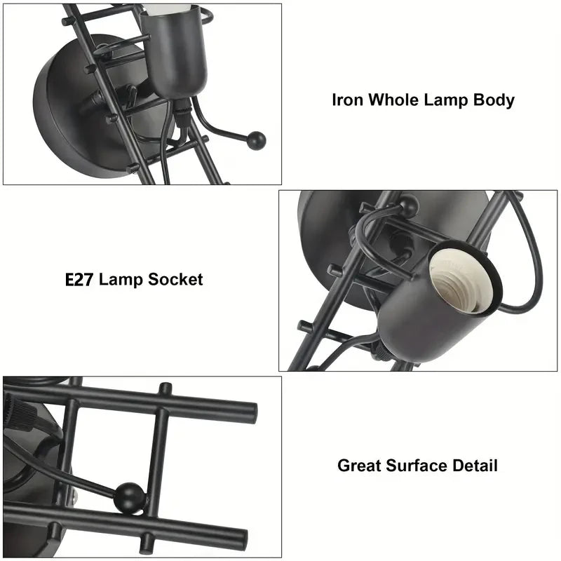 Add a touch of whimsy and modern style to your home with STDJHong's Creative Small Man Iron Lights. This unique wall lamp features a cartoon robot design that adds a playful touch to any room.