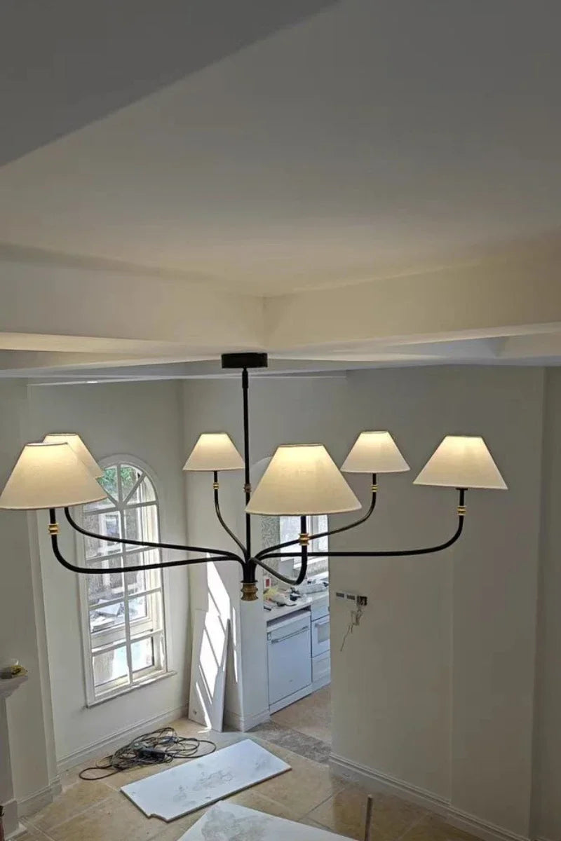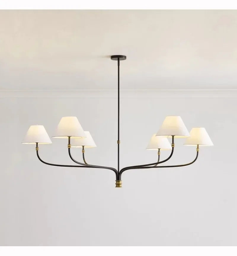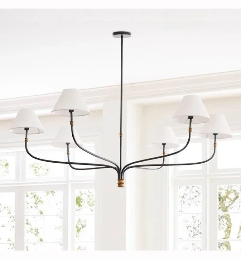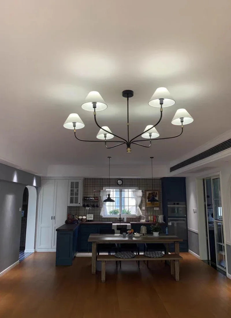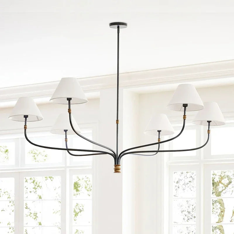 Crisp white fabric + matte-black iron fit modern, Scandinavian or cottage décor. Use solo above a dining table or line three over a kitchen island.