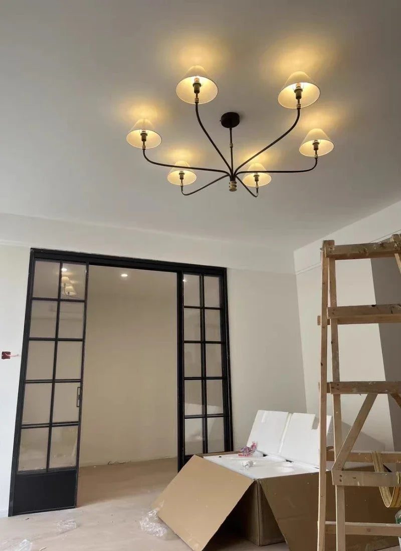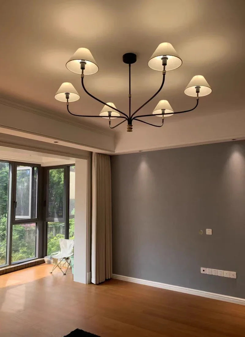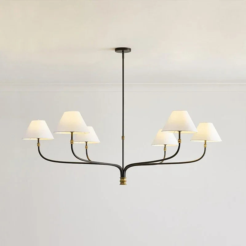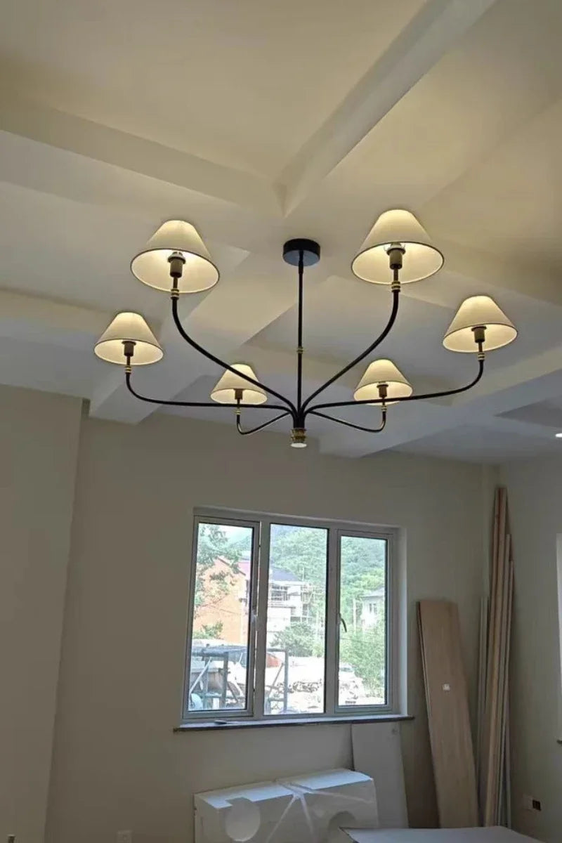 Crisp white fabric + matte-black iron fit modern, Scandinavian or cottage décor. Use solo above a dining table or line three over a kitchen island.