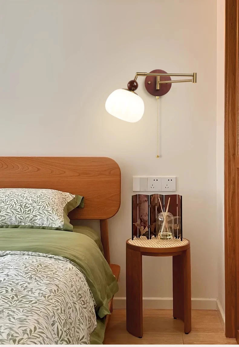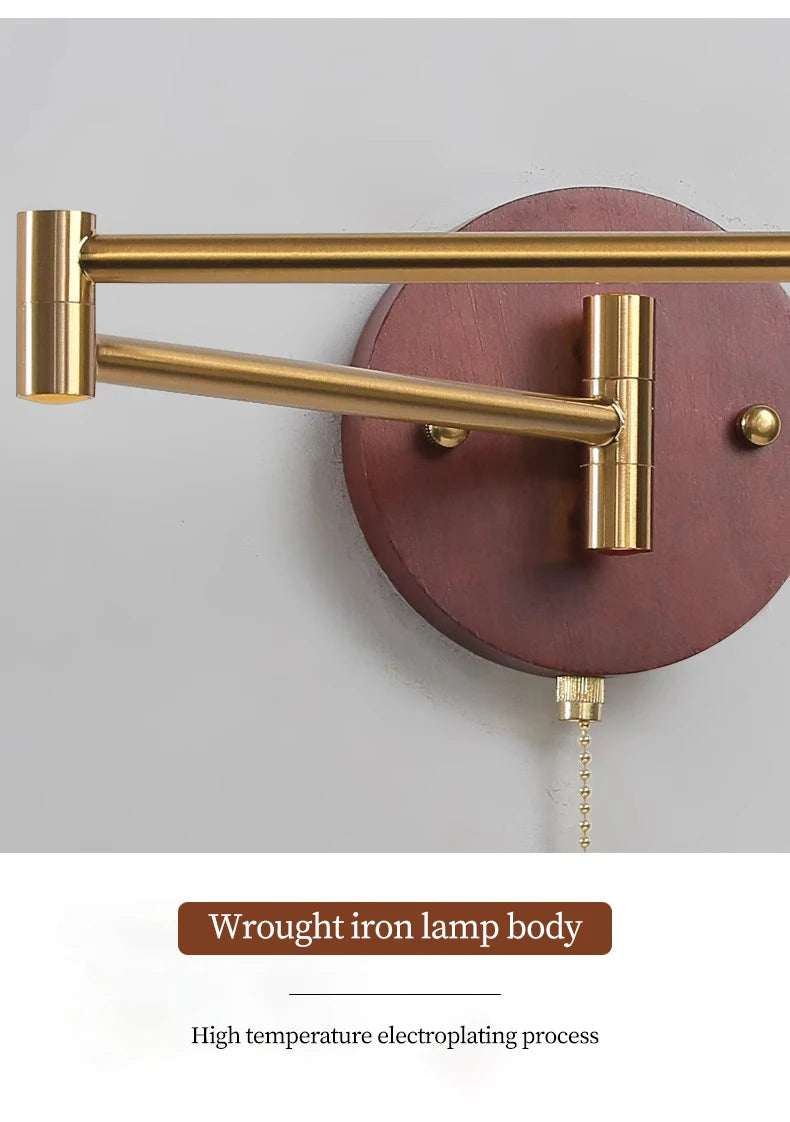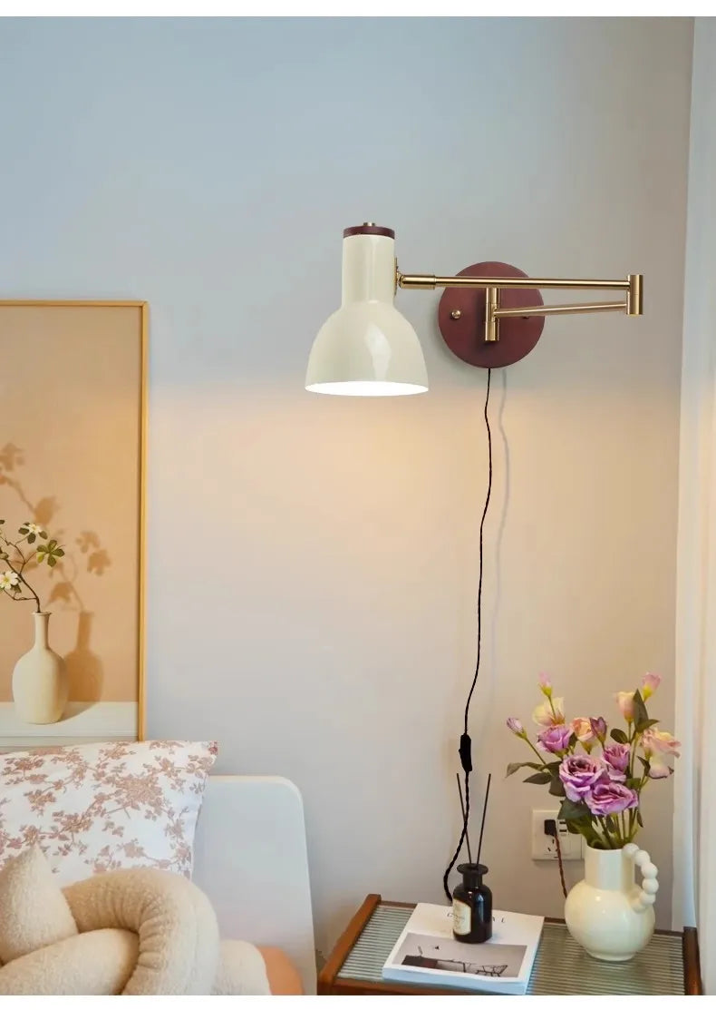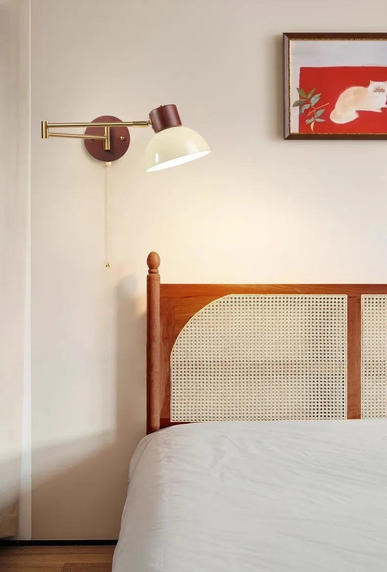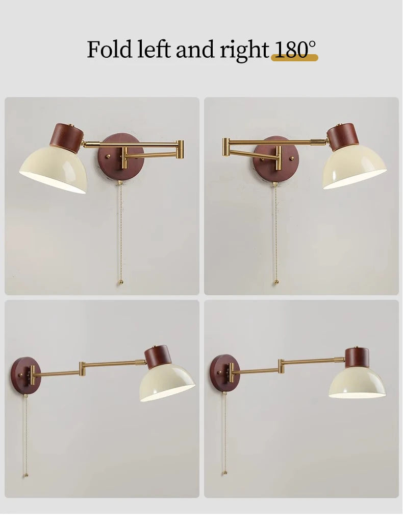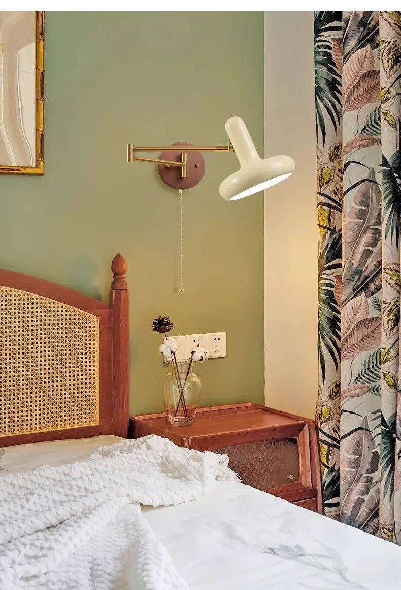 📚 Design: Nordic wall lamp—solid-wood arm + matte iron shade folds & extends like a vintage drafting lamp; minimalist statement in pure white