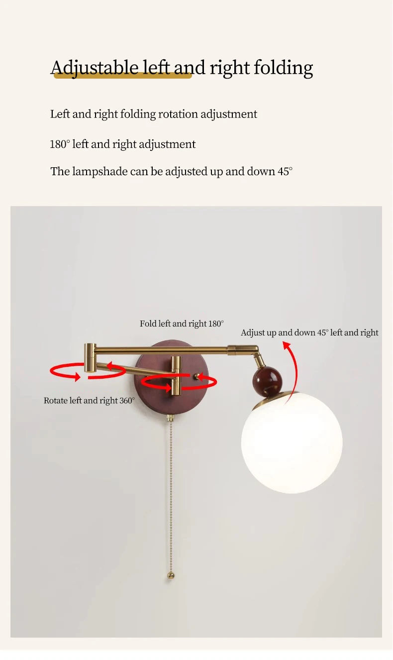 🔄 Flex: Telescopic swing arm folds flat or reaches out; shade tilts for precise bedside, desk or reading nook lighting