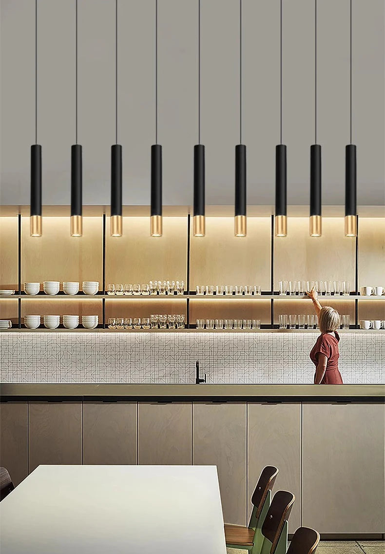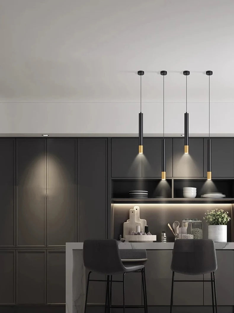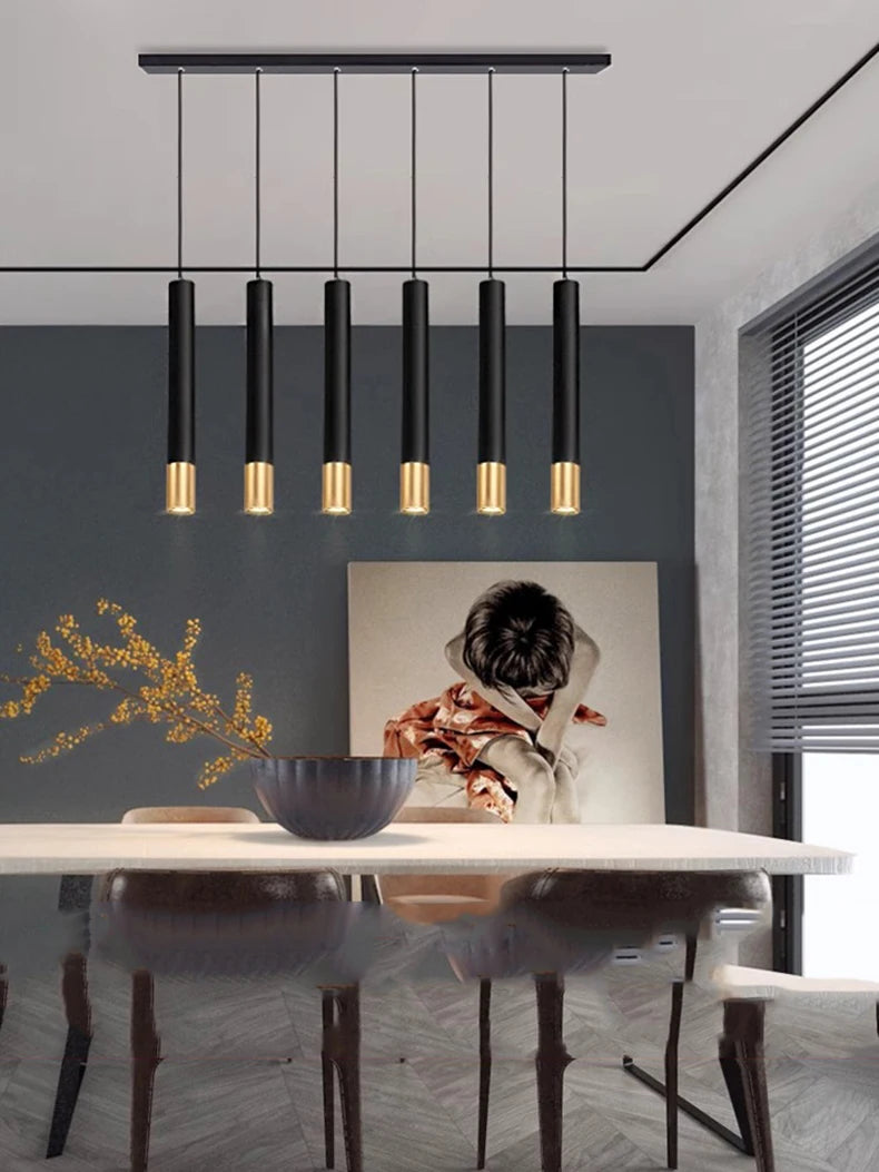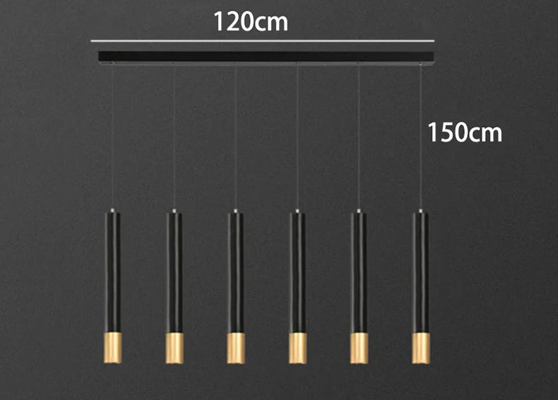 1-, 3-, 5-, or 6-head linear bars from 10 cm up to 120 cm long, all with a 150 cm adjustable cord. Perfect over dining tables, kitchen islands, or king-size beds.