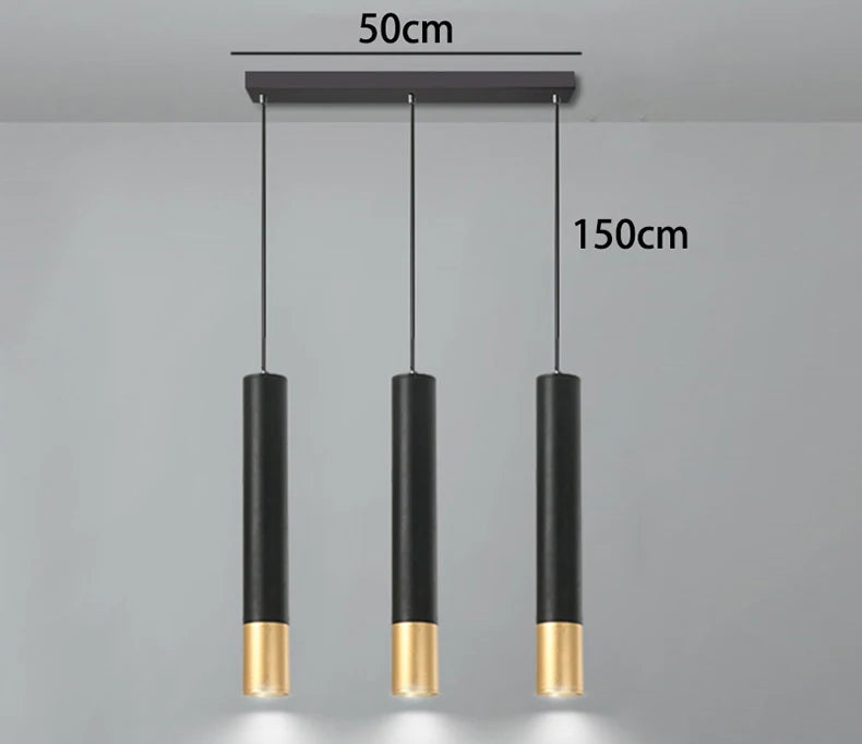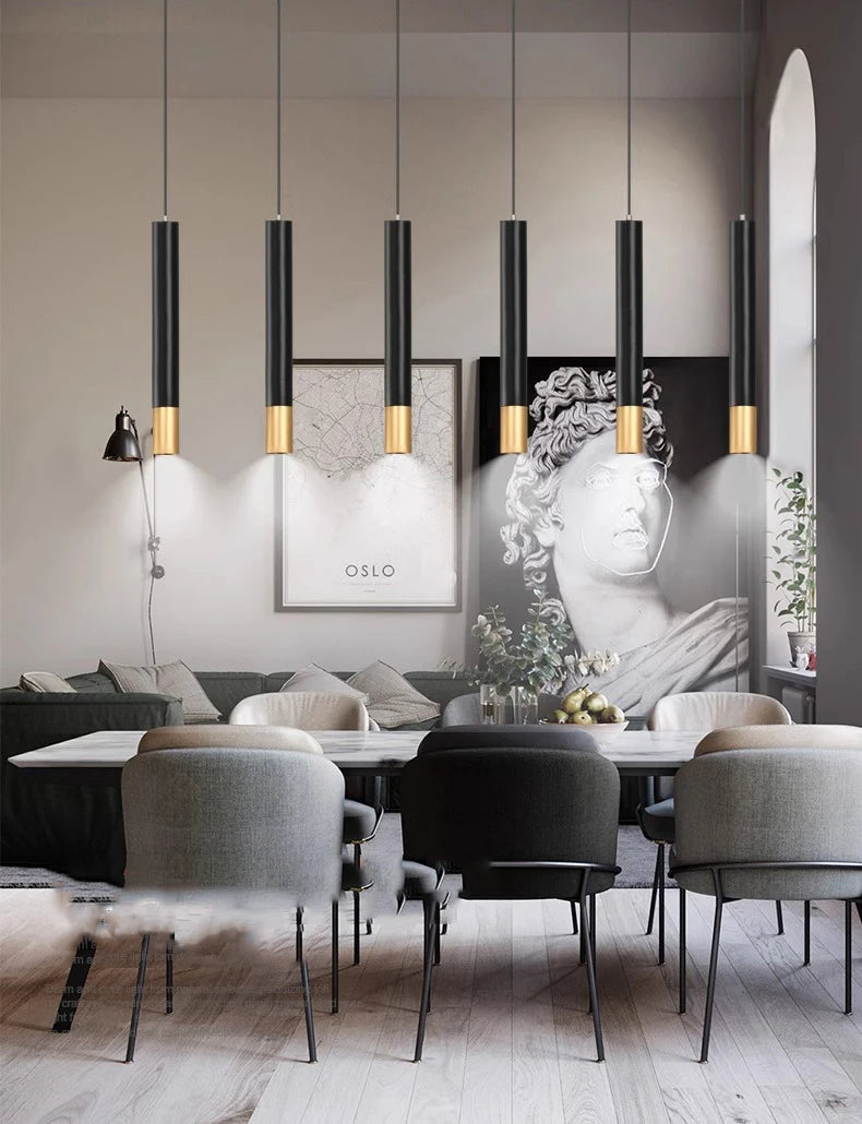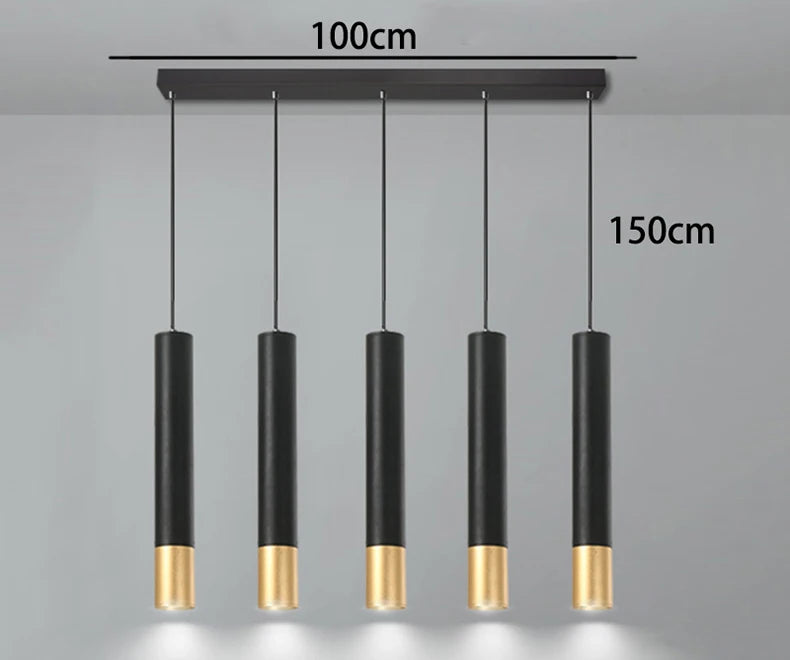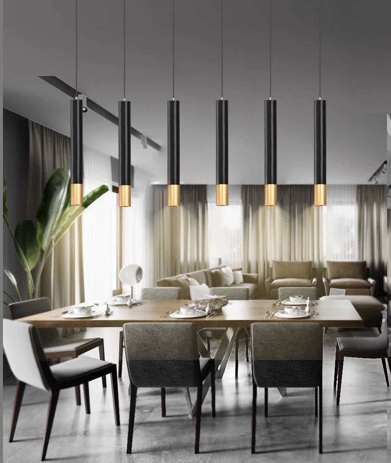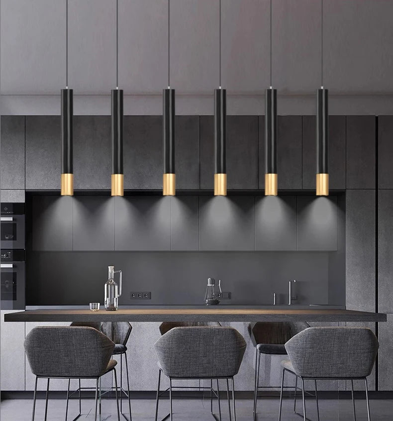 1-, 3-, 5-, or 6-head linear bars from 10 cm up to 120 cm long, all with a 150 cm adjustable cord. Perfect over dining tables, kitchen islands, or king-size beds.