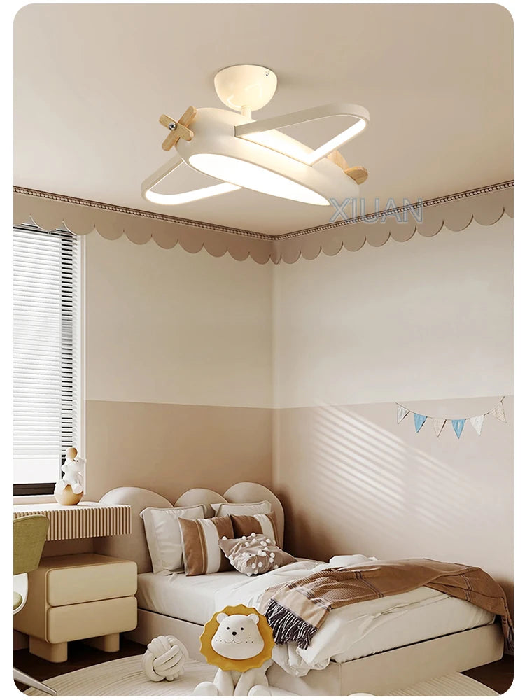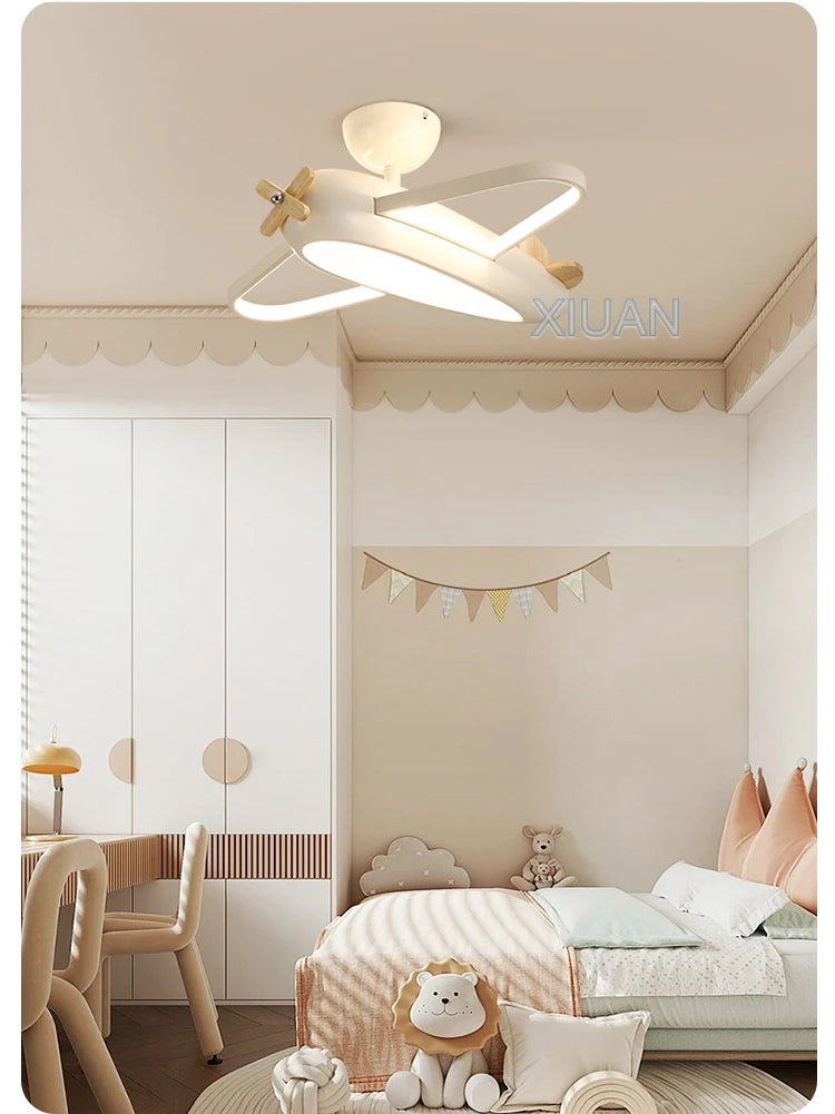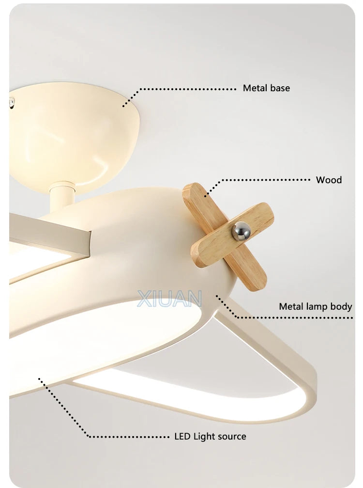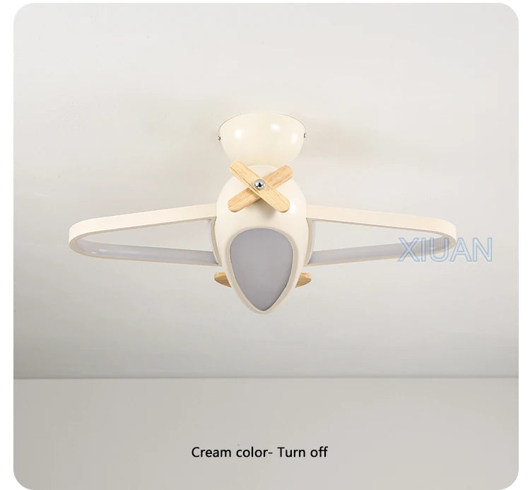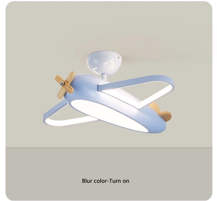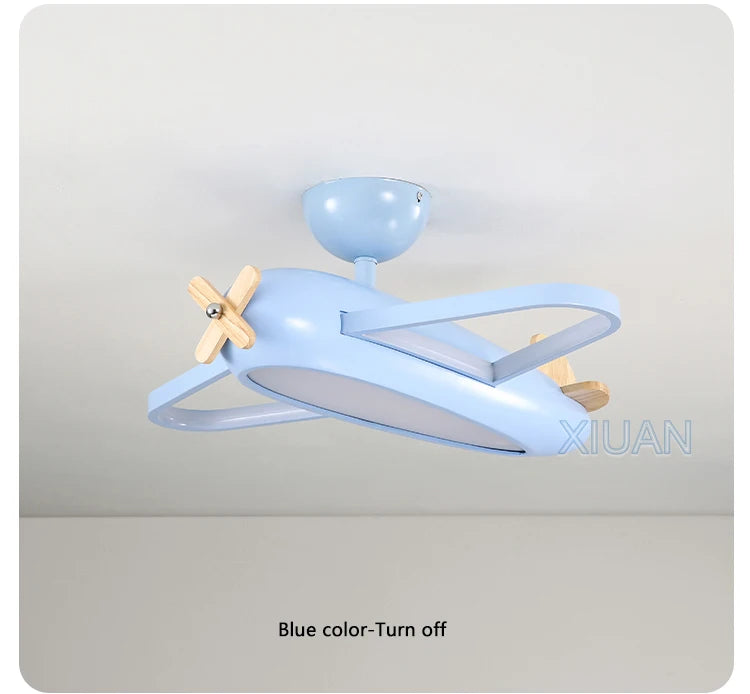 🛩️ Design: Playful cartoon airplane ceiling light in cheerful sky-blue—solid-wood propeller & ABS body turn any room into a mini runway