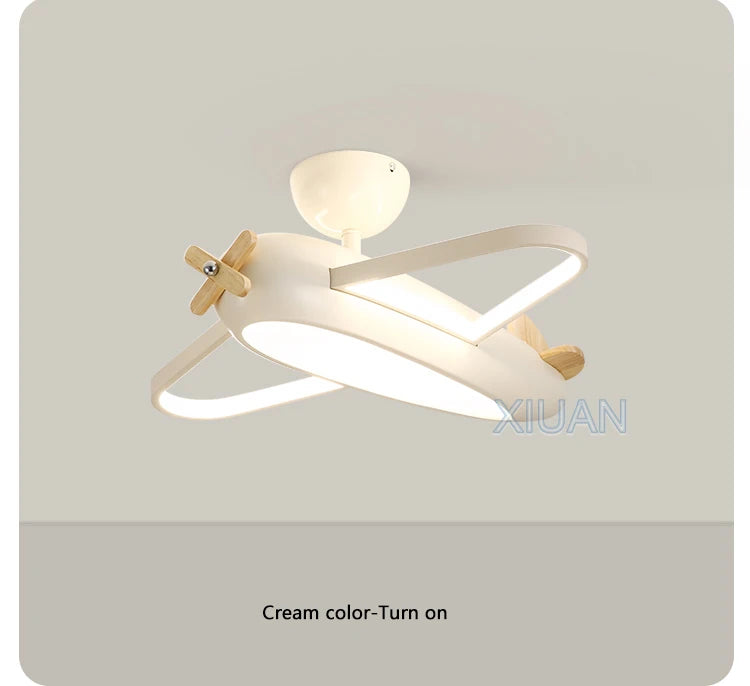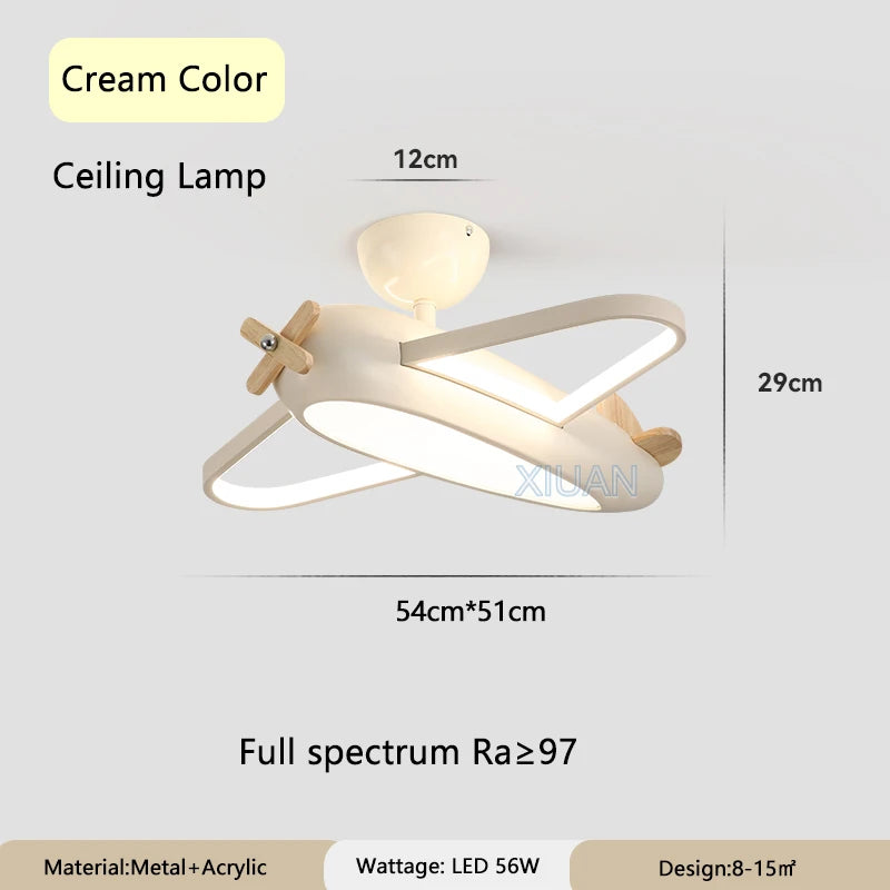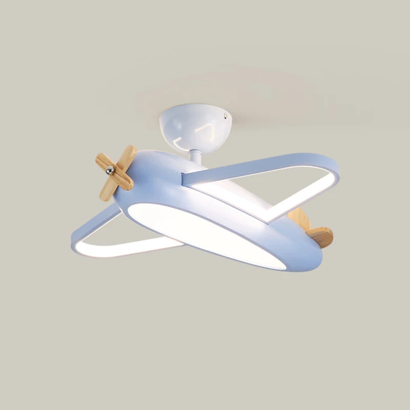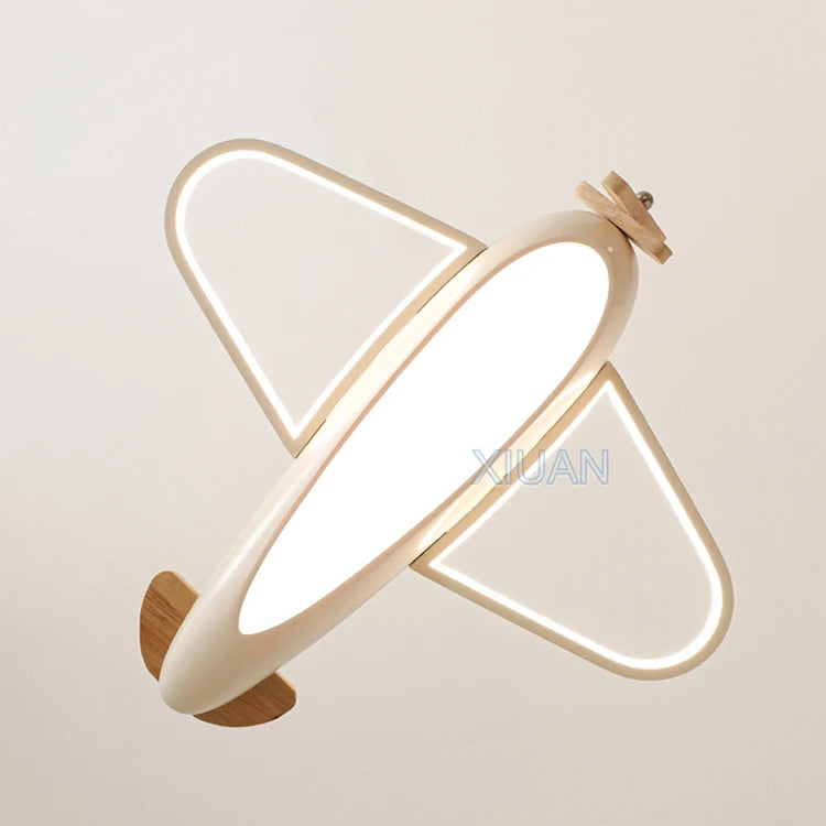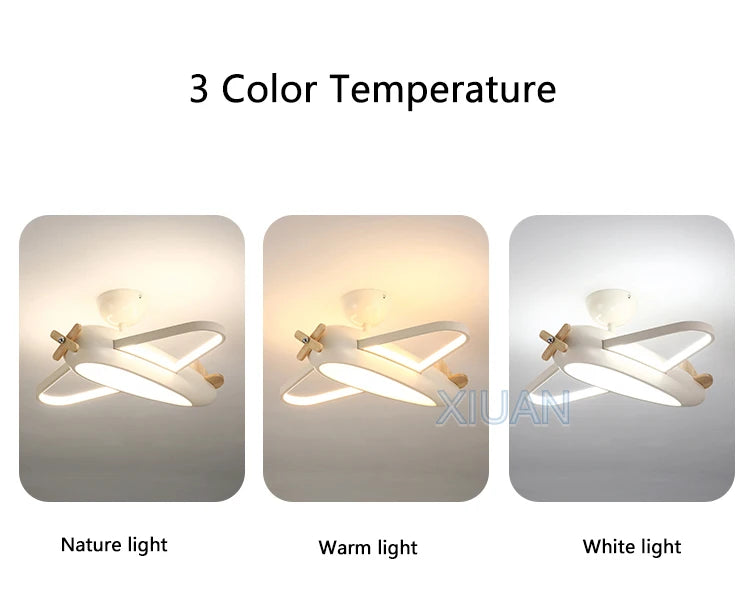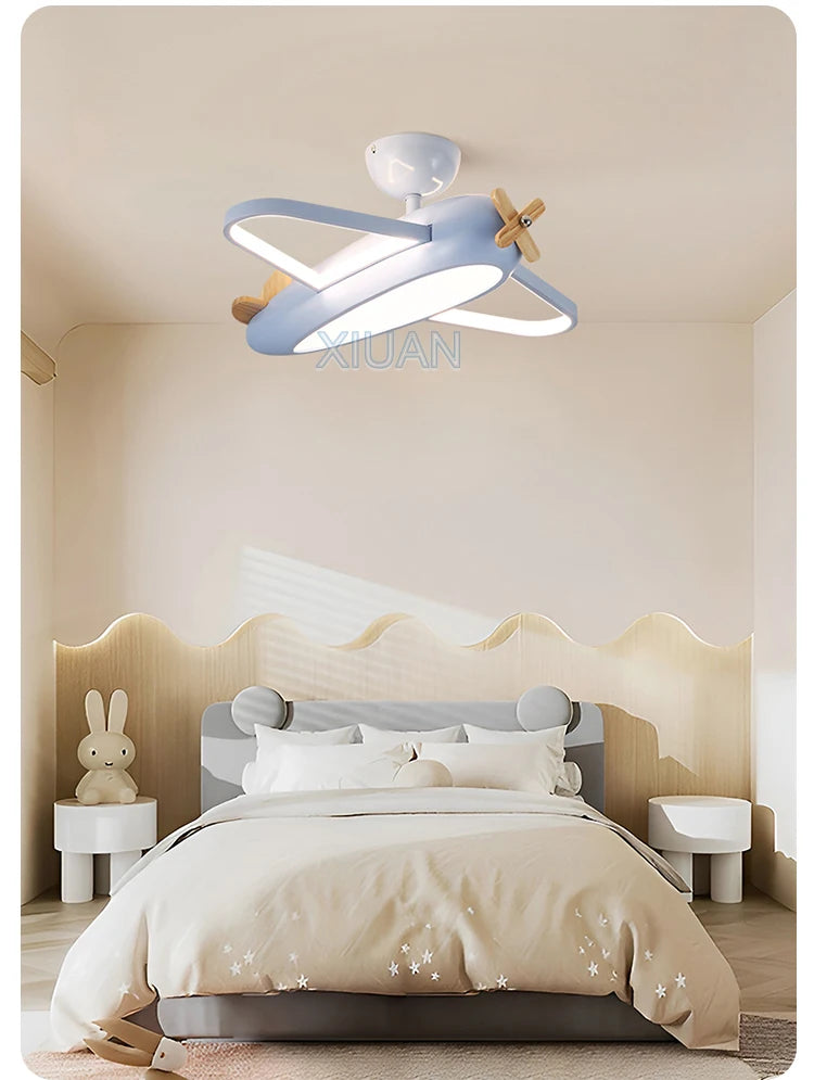 🛩️ Design: Playful cartoon airplane ceiling light in cheerful sky-blue—solid-wood propeller & ABS body turn any room into a mini runway