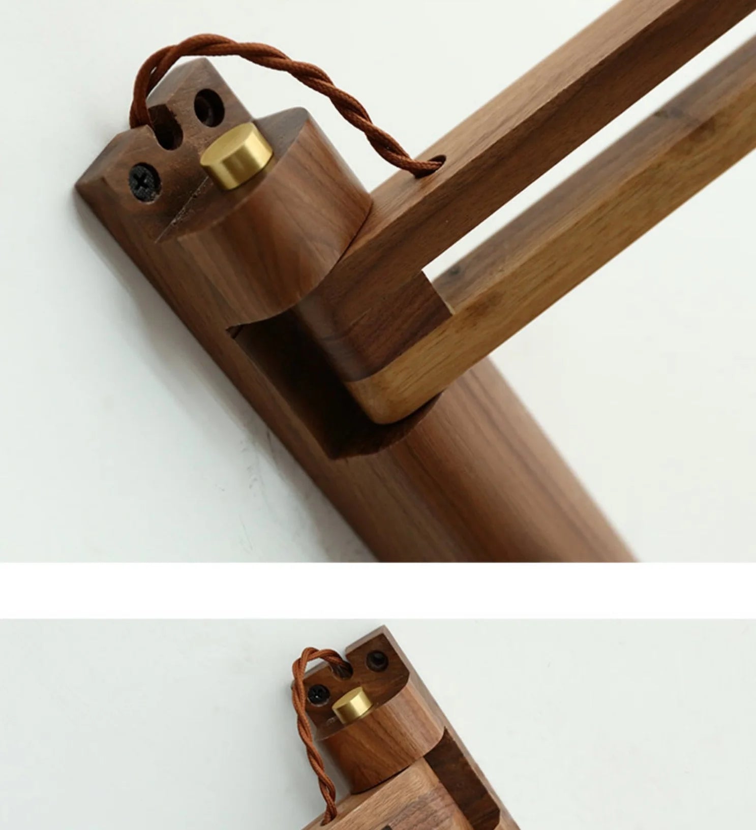 Retro folding wall lamp in solid walnut wood