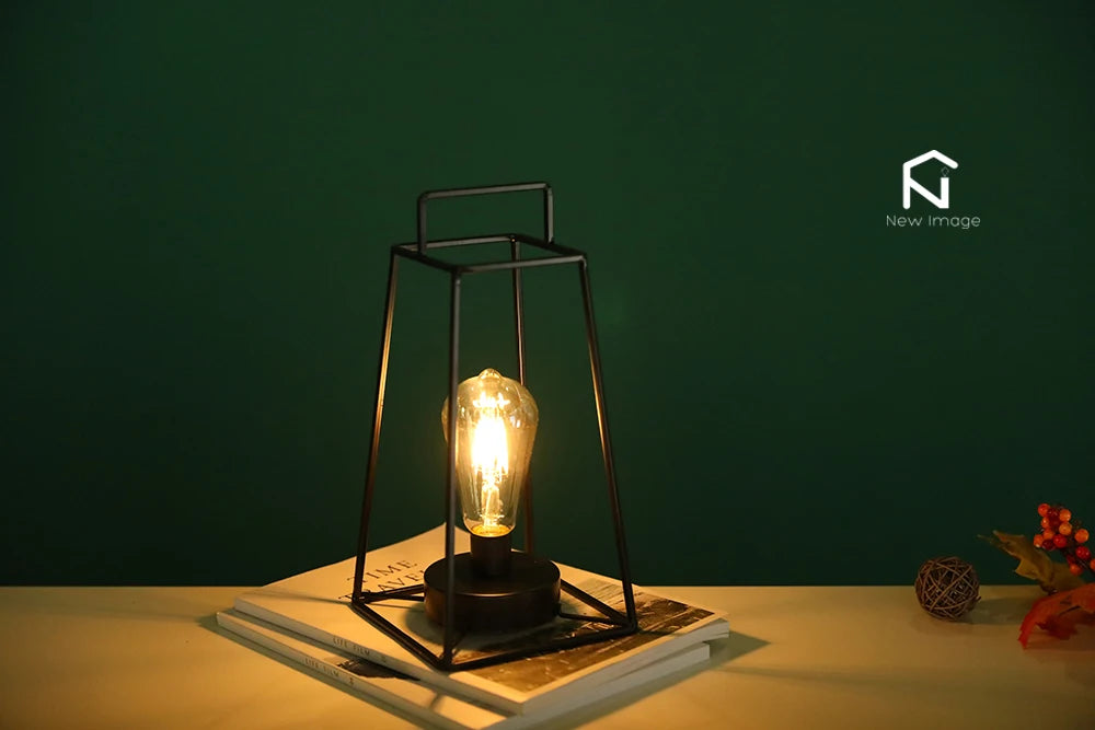 Retro Geometric Candle Holder Table Lamp Art Cordless Battery Operated Lamp Cage Wireless with 6-Hours Timer Home Decor