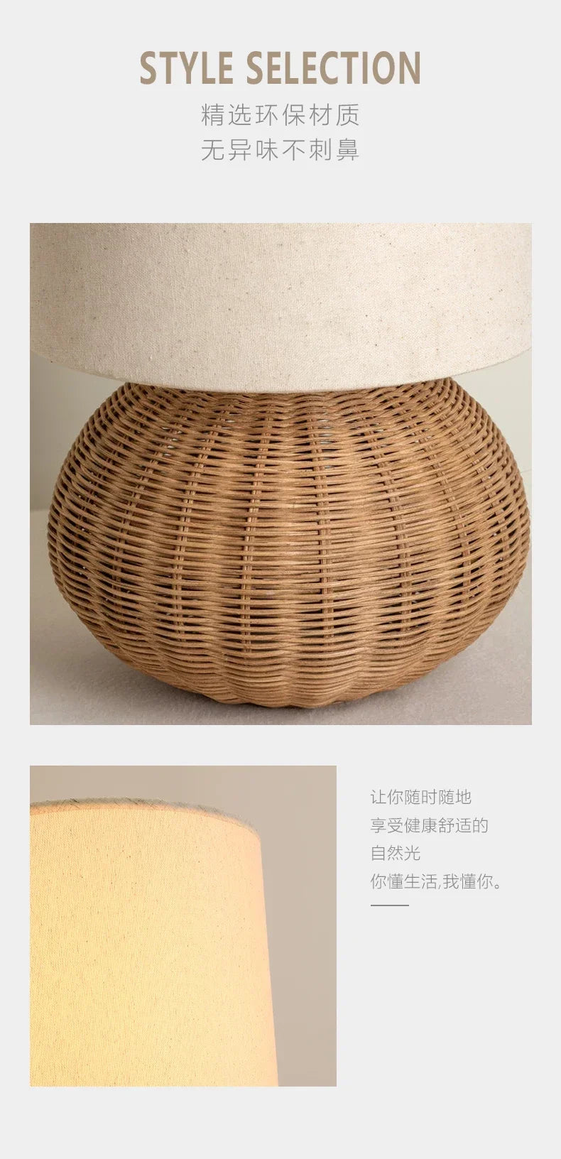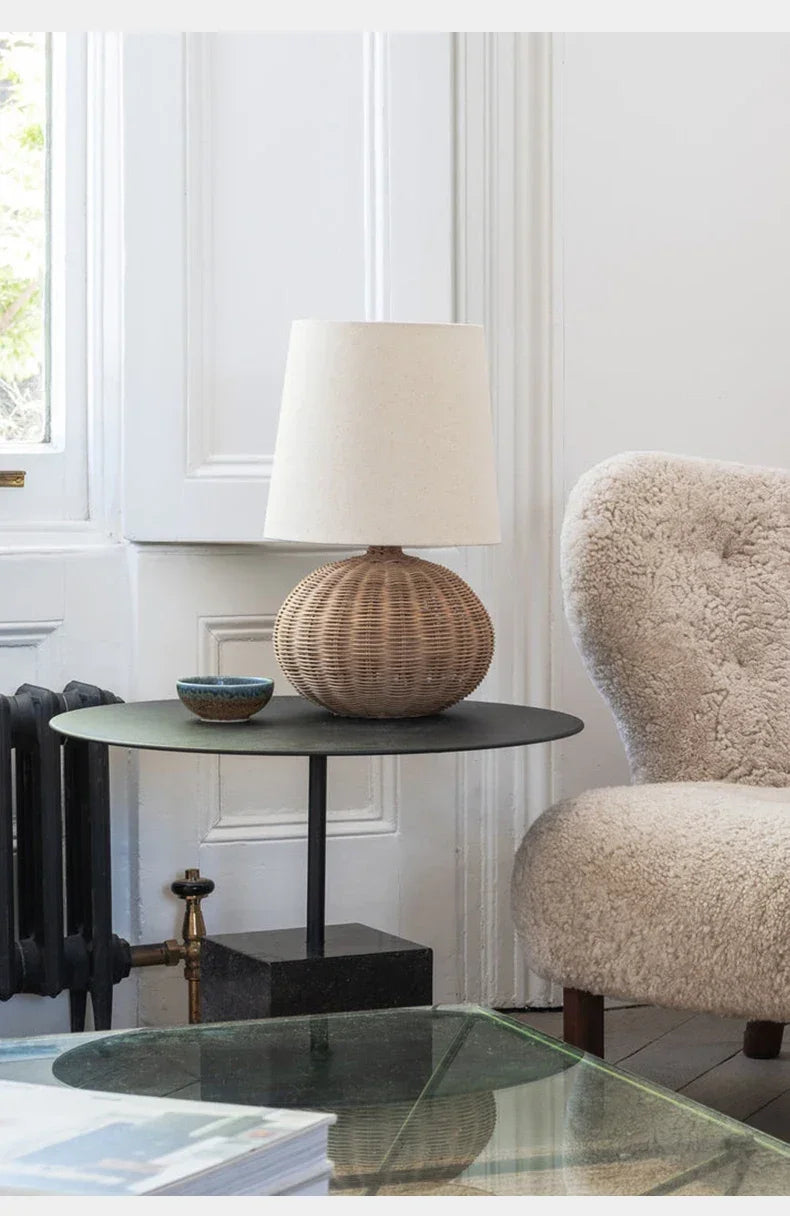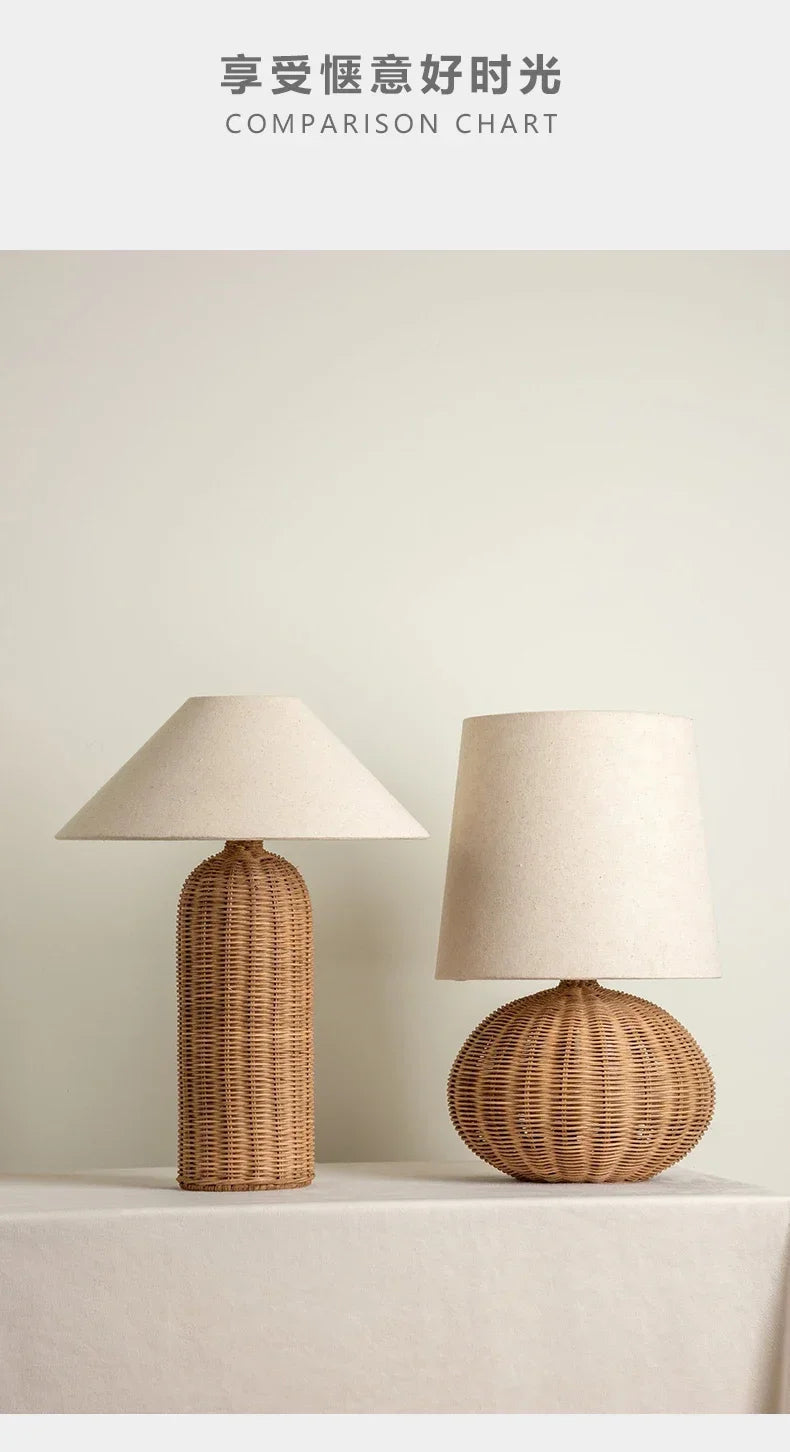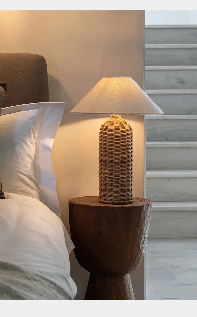 Retro Wabi-sabi Table Lamp, Medieval Wicker, Office Designer, Home Decor, Japanese Fabric Lamp