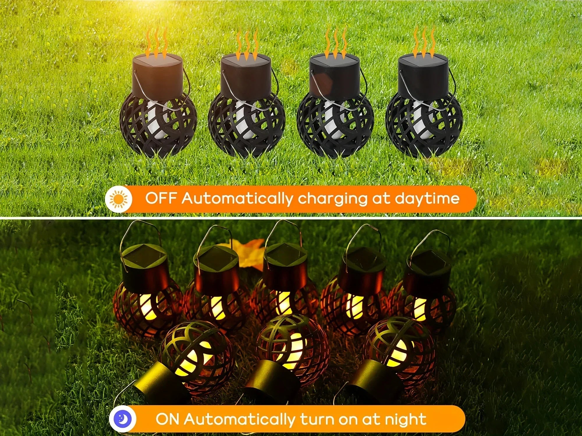 The high-efficiency solar panel converts sunlight into electricity, charging the included 2200 mAh lithium battery in 6β8 hours. The lanterns automatically turn on at night and off at dawn, ensuring hassle-free operation.