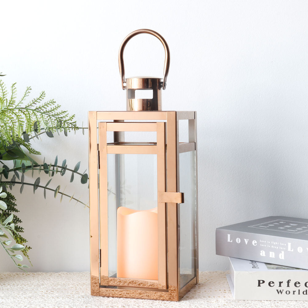Stainless Steel Candle Holder Lanterns Rose Gold Hanging Lantern Candlestick Light for Indoor Outdoor Weddings Party Home Decor