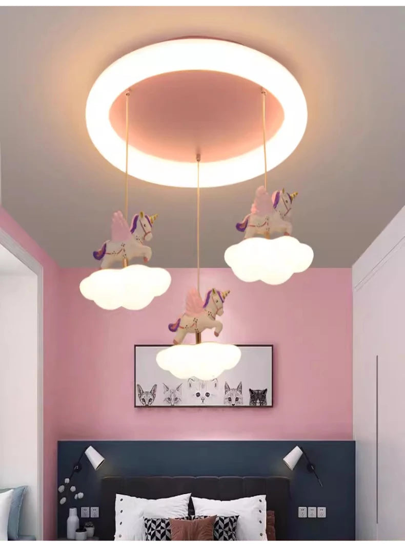 Gift them a sky of their own—add this enchanting Cloud-Unicorn Chandelier to your cart today and watch bedtime become the best part of the day!