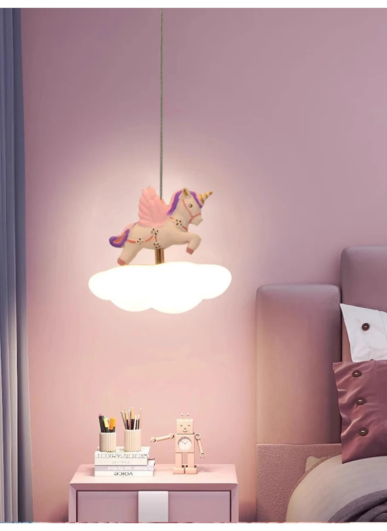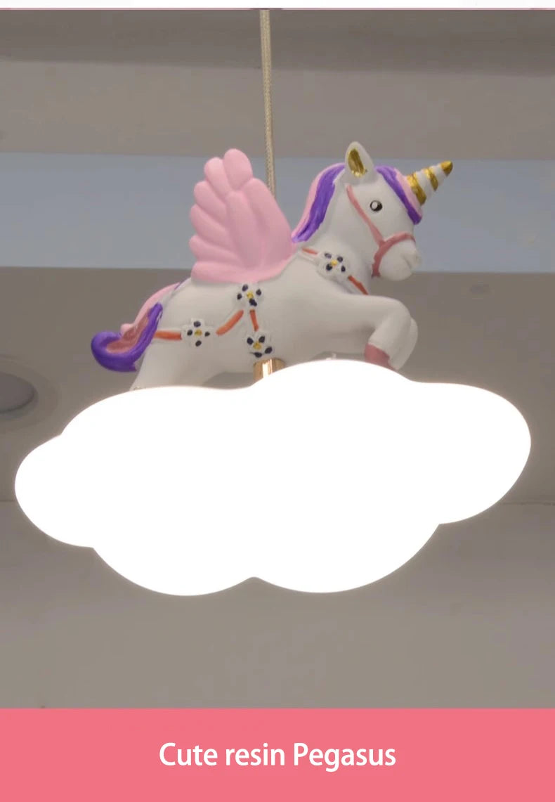 Cloud-shaped unicorn chandelier